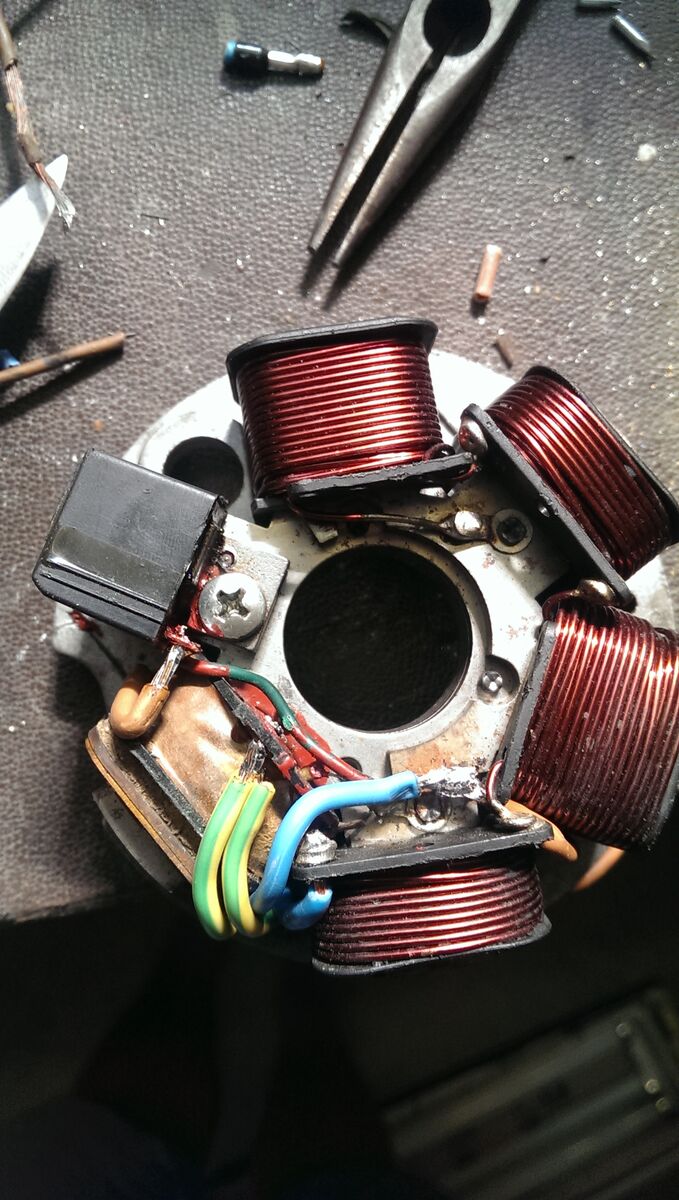 Zuerst habe Ich meine Lötstellen und Kabel auf Durchgang geprüft, die haben alle gepasst. Auch der Motorstecker hatte Kontakt. Danach habe Ich den Pickup und die Ladespule gemessen, haben beide gepasst. Es war der Kerzenstecker... Hab das Zündkabel direkt auf die Kerze gedreht und siehe da sie hat funktioniert.