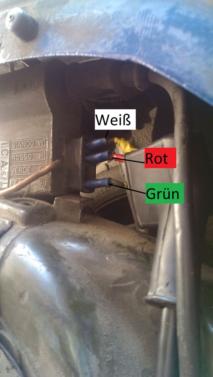 • Ich hatte heute mal etwas Zeit und habe mich deswegen mal um die Grundplatte gekümmert. Habe auch mal ein paar Bilder gemacht vom Anschlussbild und der Umsetzung als Hilfe für Leute die das gleiche vorhaben :) Ich habe keine orginalen Kabel benutzt sondern welche von einer 3-adrigen Außenleitung. Ich habe auch die Kabelschuhe recycelt, weil Ich keine Lust hatte wegen eines 10ct Artikels 5€ Versand zu zahlen, das gleiche gilt für die Pins des Motorsteckers.