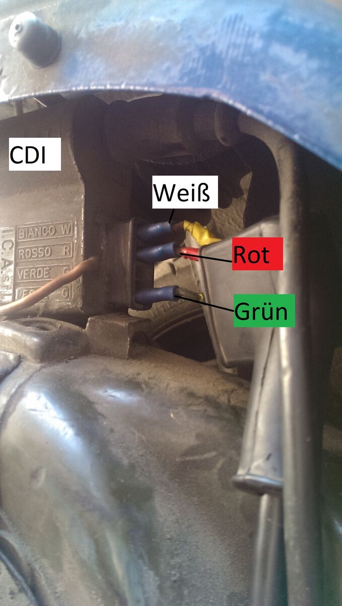 • Wie sieht denn der Anschluss des Zündkabel zur CDI aus? Der ist mit einer Gummutüllle da nur auf einen Dorn aufgedreht. Dieser Anschluss korrodiert auch gerne mal.