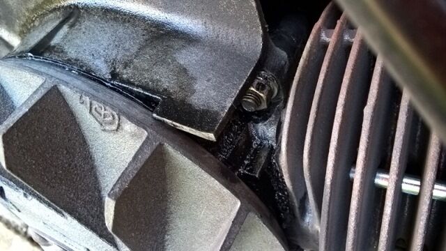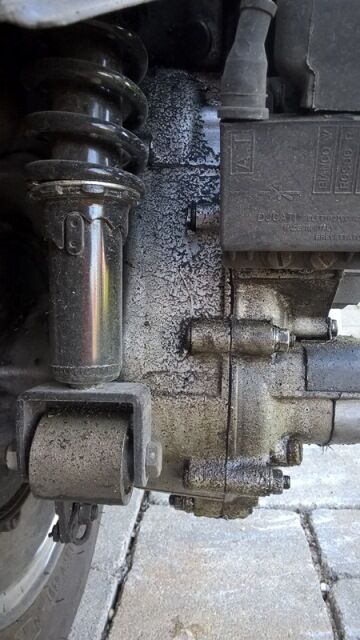 Meine Vespa "saut". Wenn ich den Benzinhahn vergesse, dann sowieso (Ölflecken unter dem Motor). Aber auch wenn ich den Benzinhahn zudrehe, bilden sich -besonders wenn die Sonne scheint- massive Ölverschmutzungen am Motorblock. Siehe Bilder...