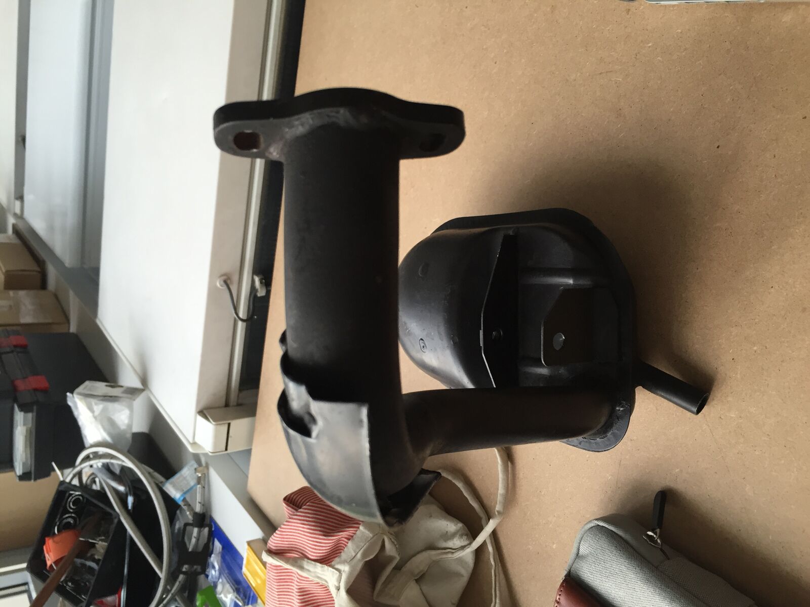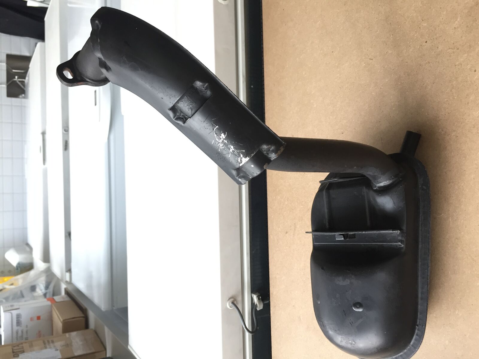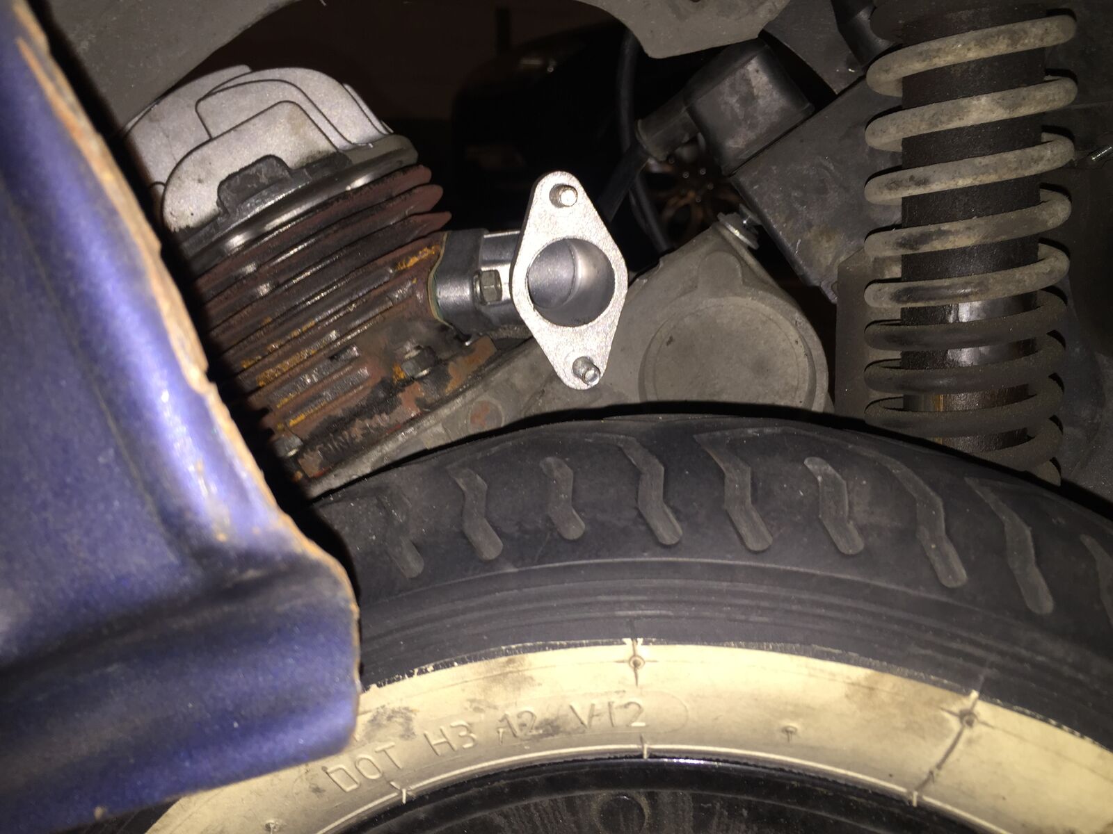 Hab mir für meine PK 50 XL 2 einen gebrauchten Auspuff besorgt, der angeblich ein Originaler sein soll, der an einem V5X2T gelaufen sein soll. Zusätzlich habe ich einen Standard Krümmer (siehe Fotos) besorgt. Beim jetzigen Einbau in die Vespa schaffe ich es aber einfach nicht den Auspuff dran zu bekommen. Meiner Meinung nach ist der Krümmer deutlich zu kurz und ich kann auch mit roher Gewalt nichts machen, da der Auspuff sonst einfach am Reifen "klebt".
