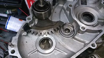 da scheint eine schnarchnase ne 2. kickstarterritzelfeder verbaut zu haben. warum auch immer. die verdaddelte lässte einfach mal weg.