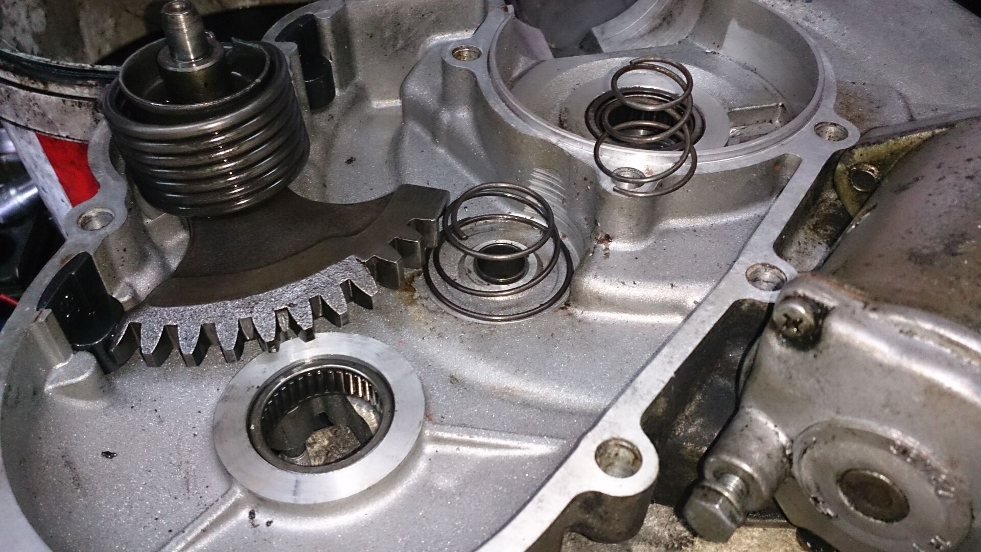 da scheint eine schnarchnase ne 2. kickstarterritzelfeder verbaut zu haben. warum auch immer. die verdaddelte lässte einfach mal weg.