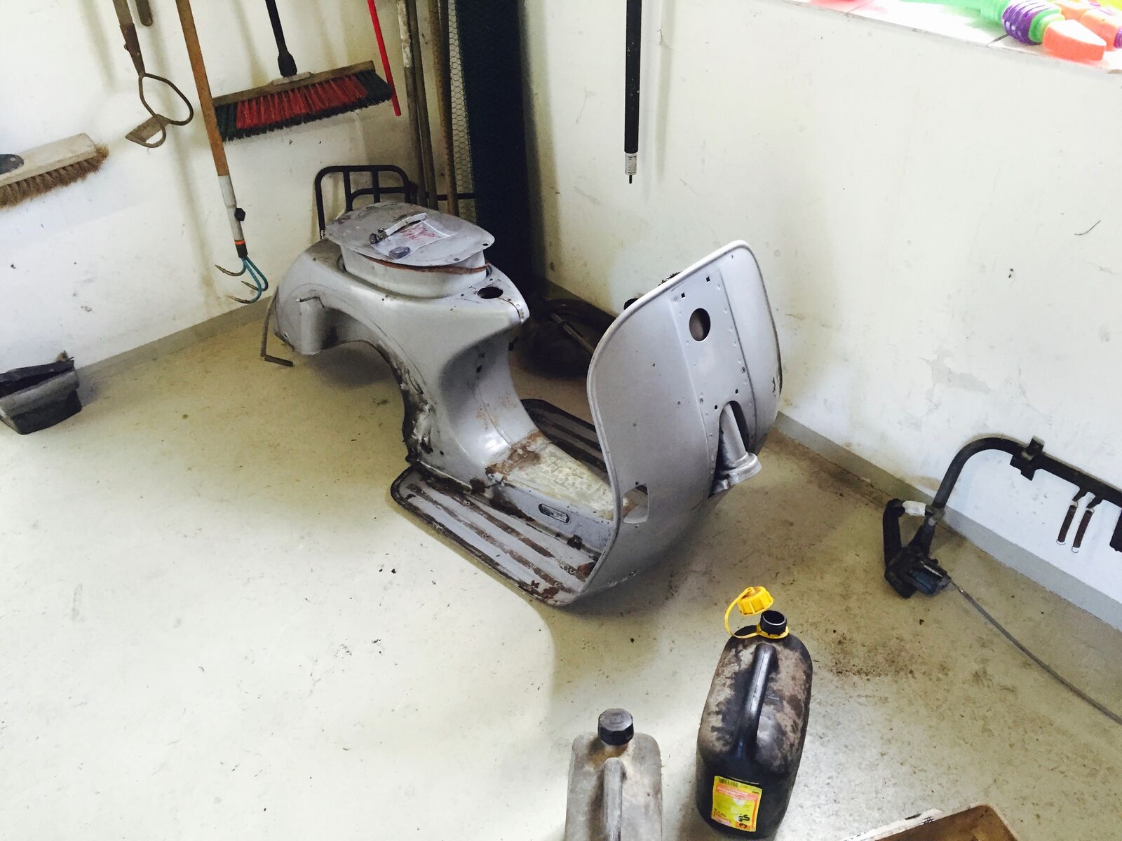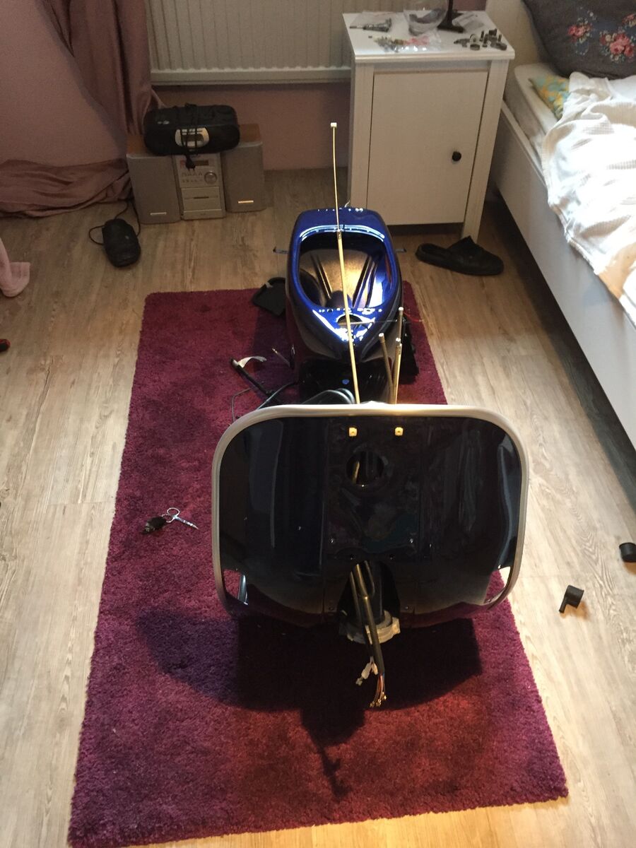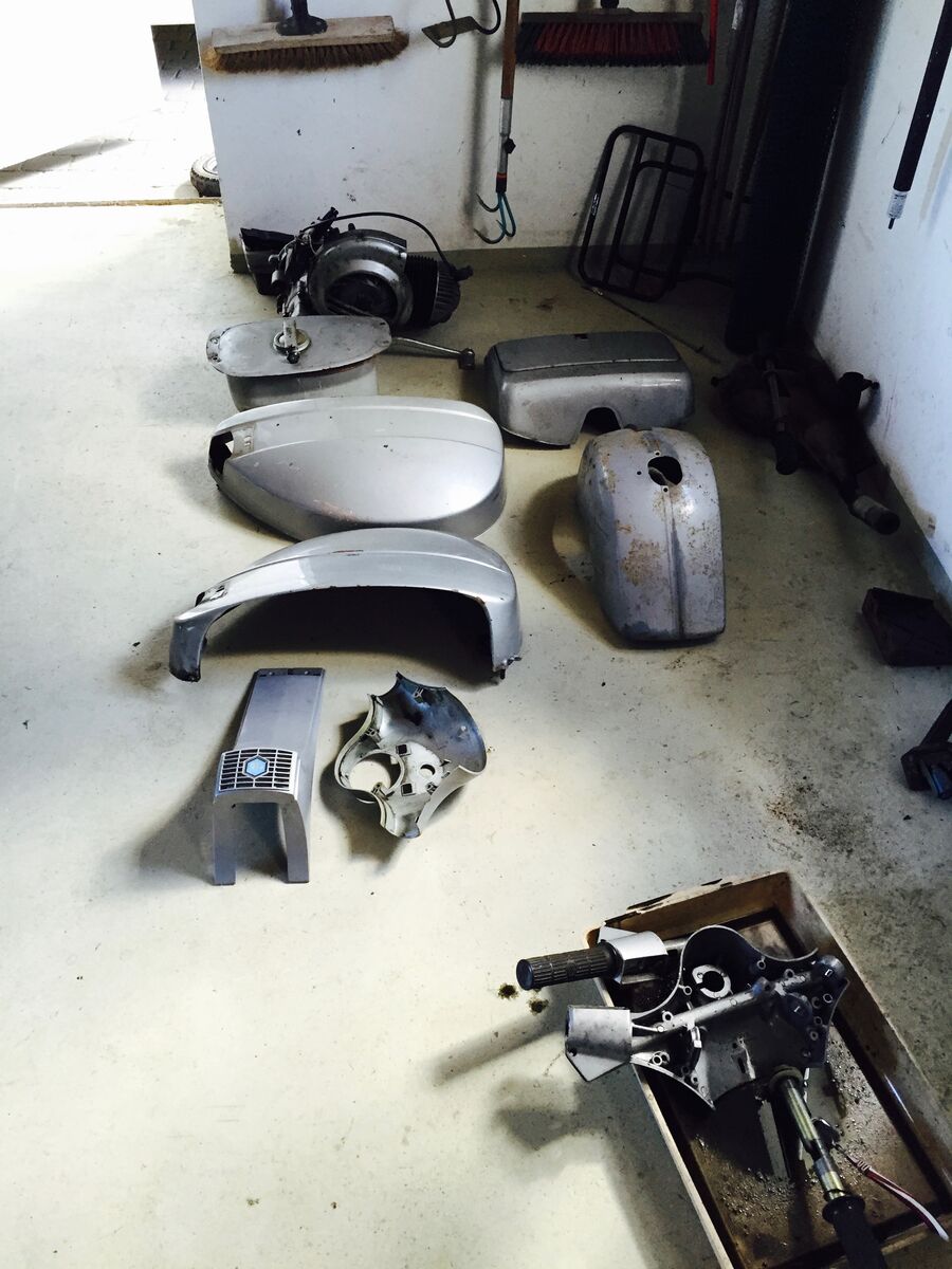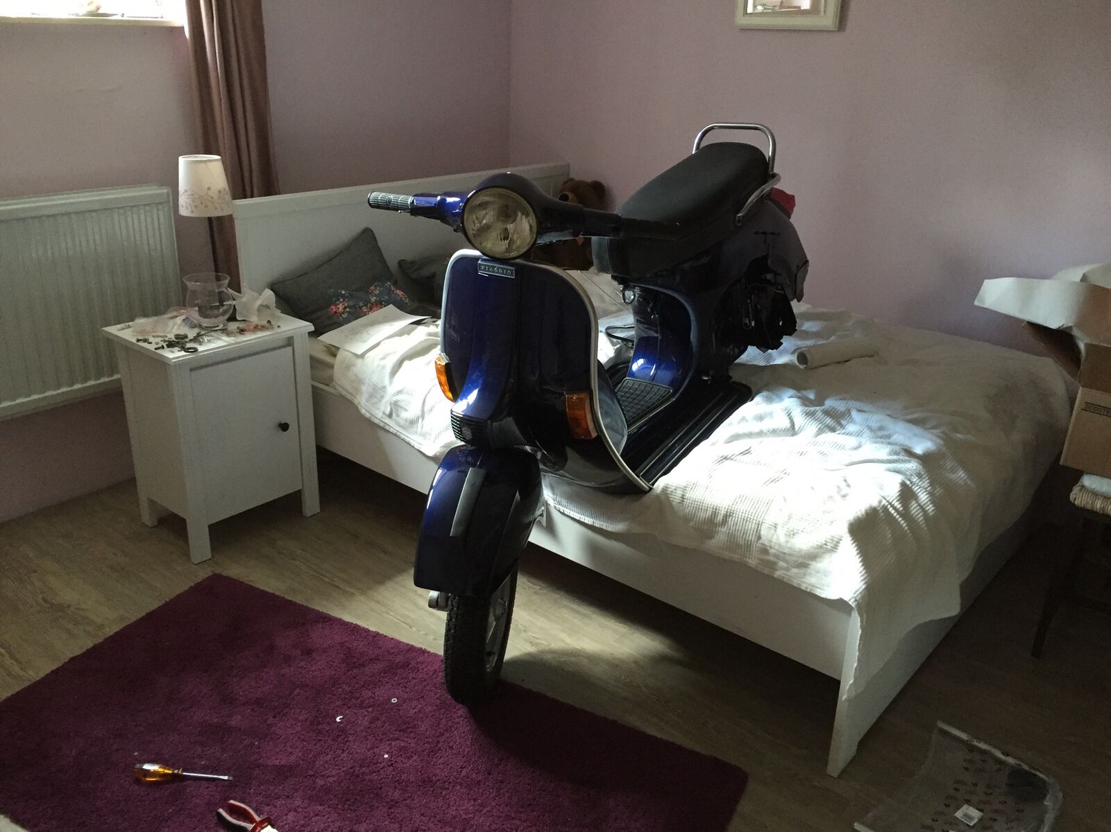 Ein wahrer Schrauber - das Bett in der Werkstatt oder die Vespa im Schlafzimmer?Allerdings sah sie auch vor dem Neuaufbau echt übel aus.