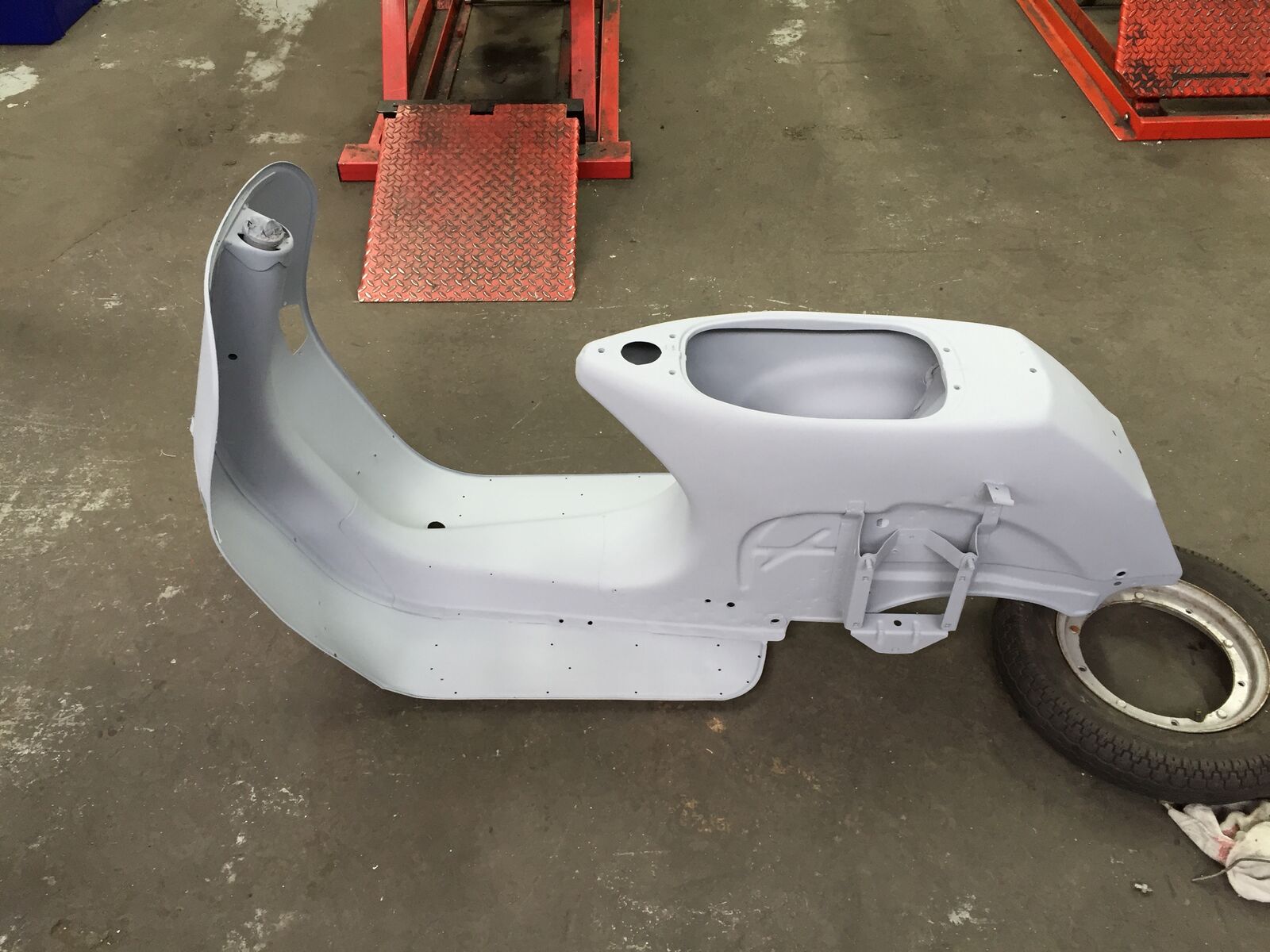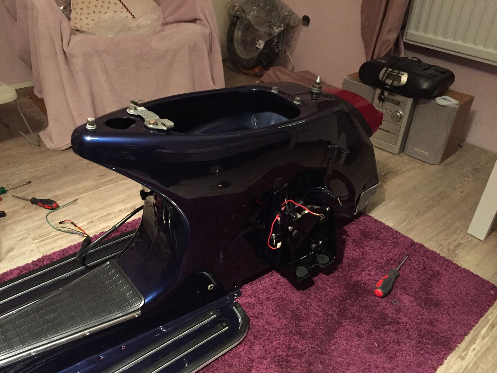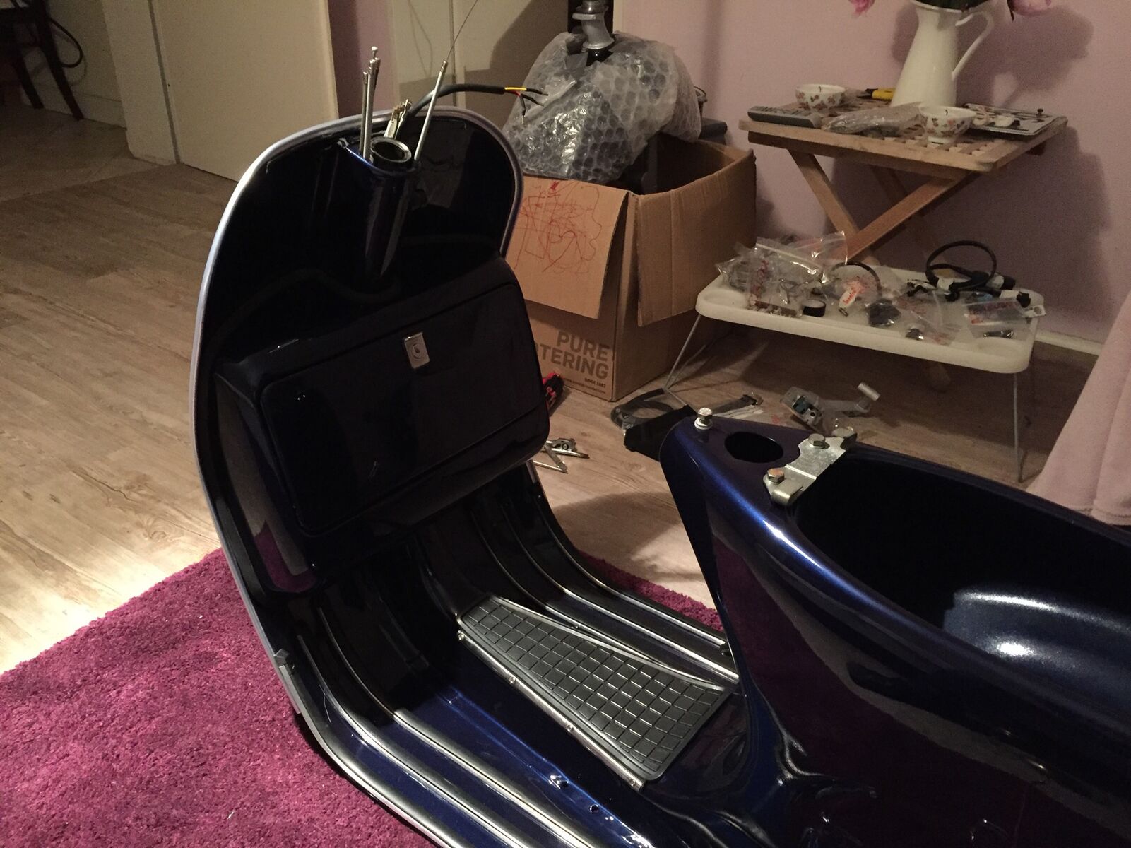 Ein wahrer Schrauber - das Bett in der Werkstatt oder die Vespa im Schlafzimmer?Allerdings sah sie auch vor dem Neuaufbau echt übel aus.