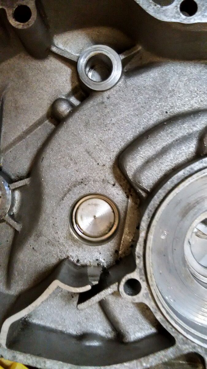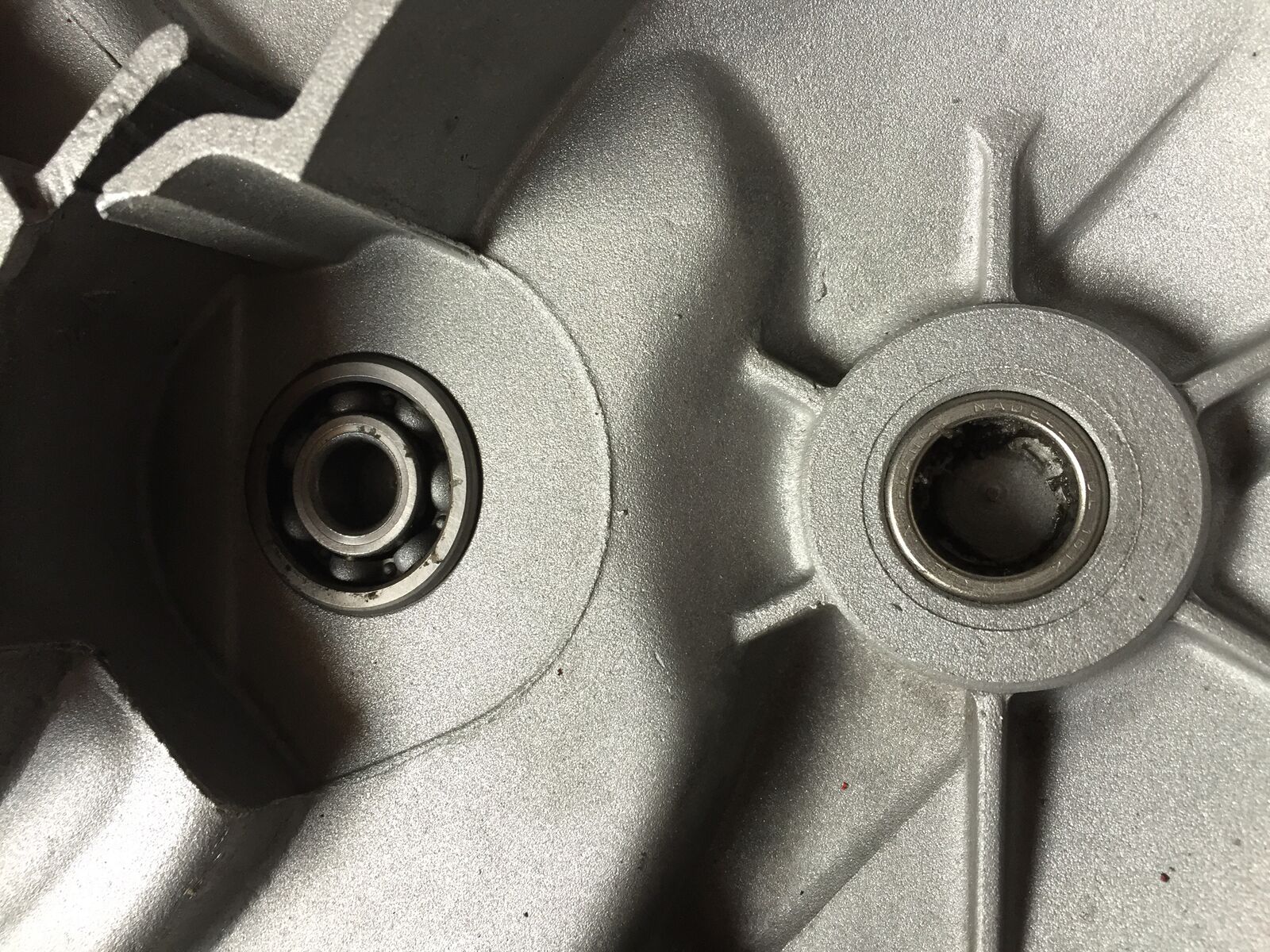 Oben links sieht man daß bei dieser Gehäusehälfte die Welle im Lager stecken blieb. Noch besser dünne Hartholz Plättchen untere Werkzeug legen. -