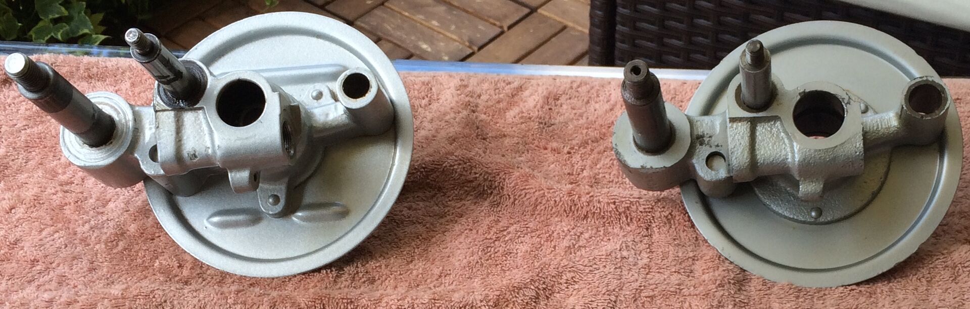 Die neue Schwinge hat wie man auf dem Foto erkennen kann eine grössere Aufnahme für die Bremsnocke(bei SIP hat man mir gesagt das sei kein Problem und habe die Nocke auch passend dazu bestellt zumal es die Schwinge mit der etwas kleineren Nocke auch nicht mehr zu kaufen gäbe allerdings leuchtete mir ein das dadurch die Bremsbacken logischerweise etwas weiter nach aussen gedrückt werden...aber gut hab gedacht wird schon so passen..Schwinge alle Lager neu montiert lackiert und zusammengebaut und wie ich es befürchtet habe beim aufsetzten der Bremstrommel schleift diese dermassen bzw die Trommel lässt sich kaum von Hand drehen..Nun ist meine Frage Bremsbacken sind alle die gleichen und wie ich das mit der Bremstrommel sehe auch also vom Durchmesser....Ich habe absolut keinen Plan was ich da jetzt machen soll?Als einzige alternative wäre mir eingefallen die Trommel vom innenduchmesser etwas zu vergrössern aber als beste Lösung kann ich mir das nicht vorstellen