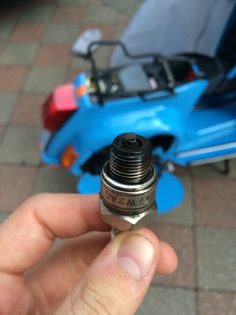 Die auf dem Bild abgebildete Kerze hatte der Vorbesitzer drin. Die ist inzwischen nicht mehr verbaut. Hatte gelesen, dass man tendenziell kältere Kerzen ab 75 ccm verbauen kann... Hab hier ne NGK B6HS und ne NGK B8HS liegen.