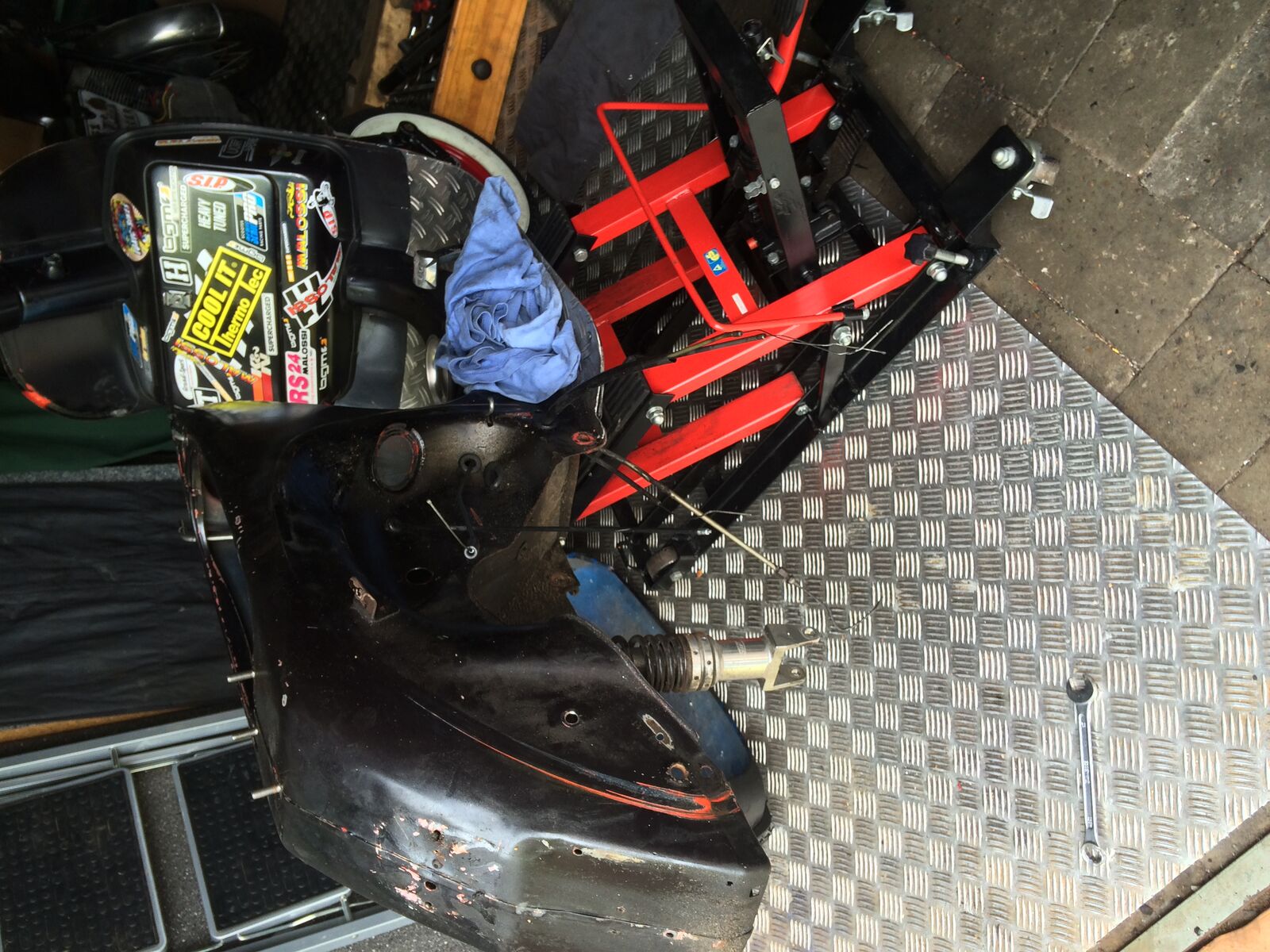 ...so, war n bisschen einkaufen! Naja so teuer ist der Kram für die Kiste auch nicht! Morgen wird se abgeholt, ich hoffe auf Achse, wenn alles gut geht! Naja, sonst fliegt sie in den Sprinter... Werkstatt ist aufgeräumt!