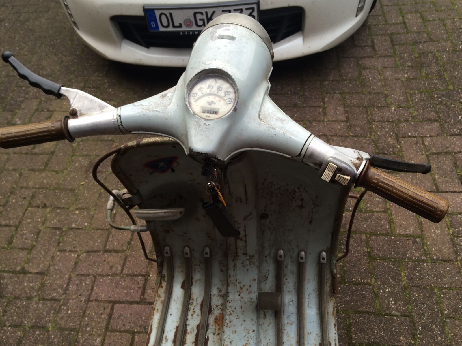 Hallo Leutz, meine Ratte hat seit gestern Konkurenz bekommen! Hab von nem guten Kumpel ne Lambretta TV 175 SS Serie 2 bekommen, das Teil ist aus Erstbesitz und hat ne echt geile Pattina! Sie wurde von einem jungen Mädchen gekauft und dann nur sehr wenig gefahren! Ist dann 1985 kaputt gegangen, der Fehler wurde nie gefunden! Das Schätzchen wurde abgemeldet und seit damals nicht mehr bewegt! Nun hab ich ein Wochenende mit dem Teil verbracht und Dornröschen aus ihrem langen Schlaf geweckt! Es waren ne Menge Sachen zu machen durch die lange Standzeit, aber der eigentliche Fehler