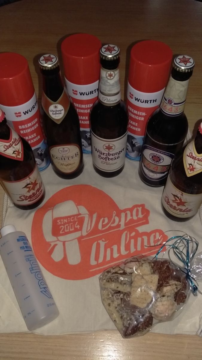 Mein anderer Wichtel hat mich mit Rum-Kugeln (spätestens bei den Esc-Wochenenden kann man ja alles brauchen, was alkoholisch ist :-4 ) und vespa-Prosecco bedacht. Außerdem einem Krimi uuuuund doora hat Original Bulbs, einen Spiralschlüsselanhänger in Orange und Originale 70er bäpper bekommen :love: