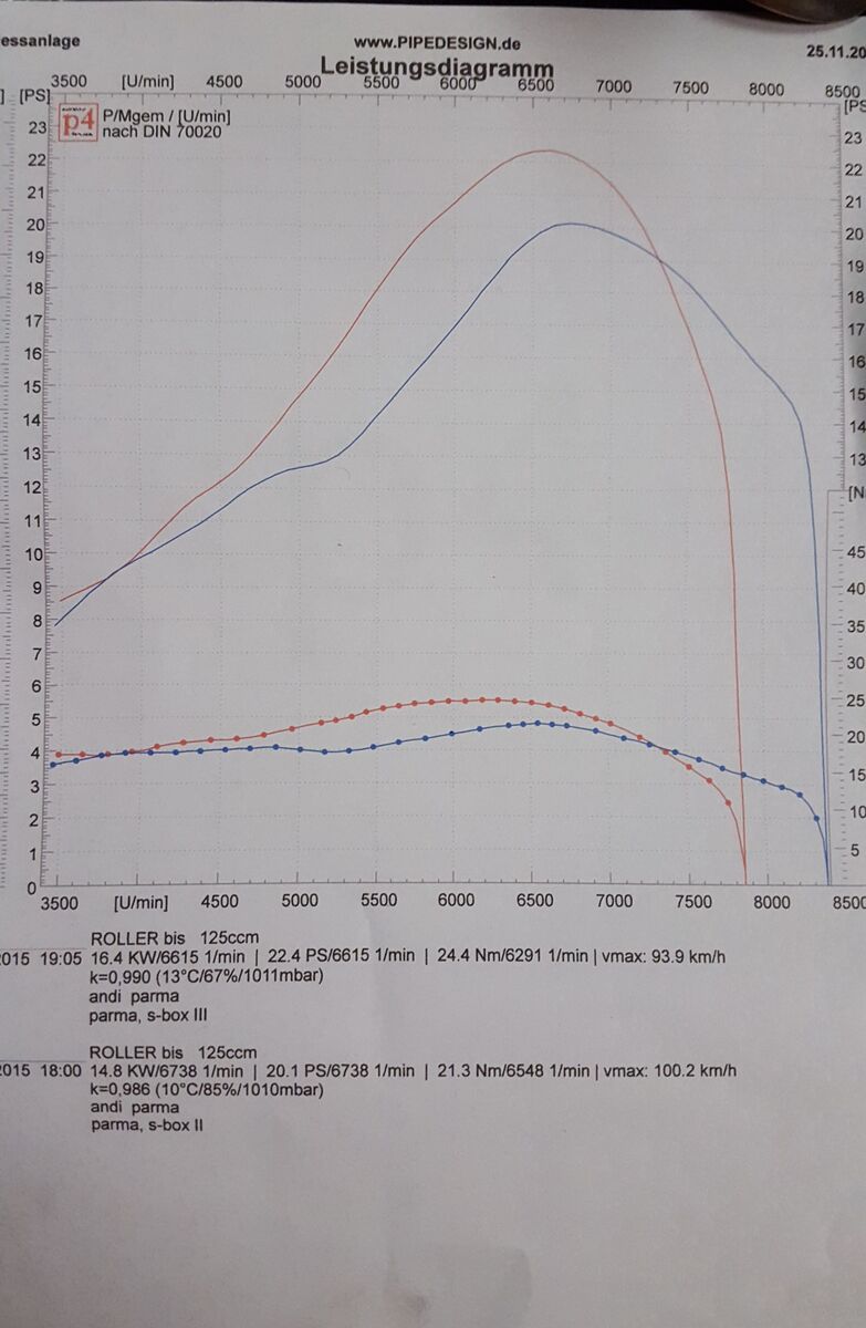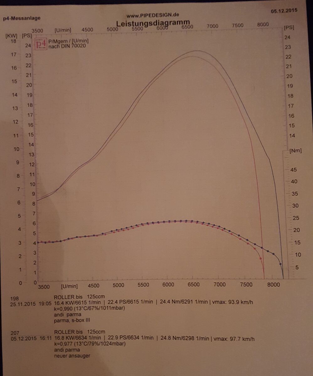 Also ich merke das praktisch nicht. Ich schalte um 85 in den 4. Gang, das entspricht so ca. 6800 - 7000 Umdrehungen. Da ist noch genug Schmott da. Was ich stark merke ist der Drehmomentbuckel von 5000 - 6500. Das schiebt gut vorwärts. Bei der 2er Box war da immer warten angesagt bis es dann los ging. Wenn ich im 4. das Gas auf der Straße stehen lassen geht der Lusso Tacho über 120 raus. Ich schätze mal echte 110 läuft der Bock