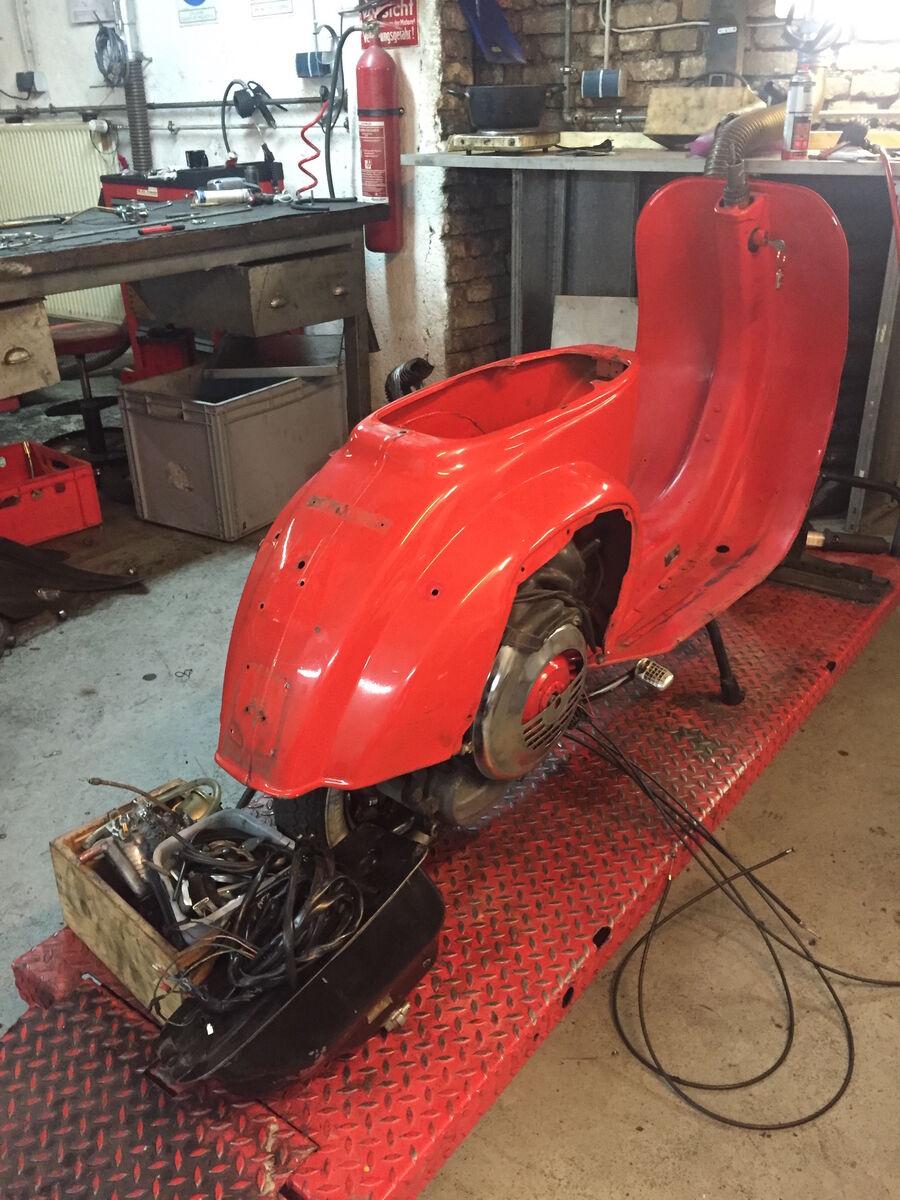 In der Münchner Innenstadt allerdings nicht ganz so einfach. Wie gut, wenn man da die Räume der Vespa-Werkstatt um die Ecke nutzen darf. ![]()