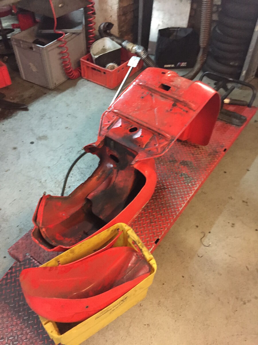 Gestern war der Startschuss, das gute Stück ist zerlegt und wird nächste Woche sandgestrahlt werden. Nach Rücksprache mit dem Lackierer meines Vertrauens ist der originale Lack leider ist in zu schlechter Verfassung und das Freilegen lohnt sich daher nicht mehr - kein Problem, denn die neue Farbe, in der das Kleid schon bald erstrahlen soll, steht schon fest! ![]()