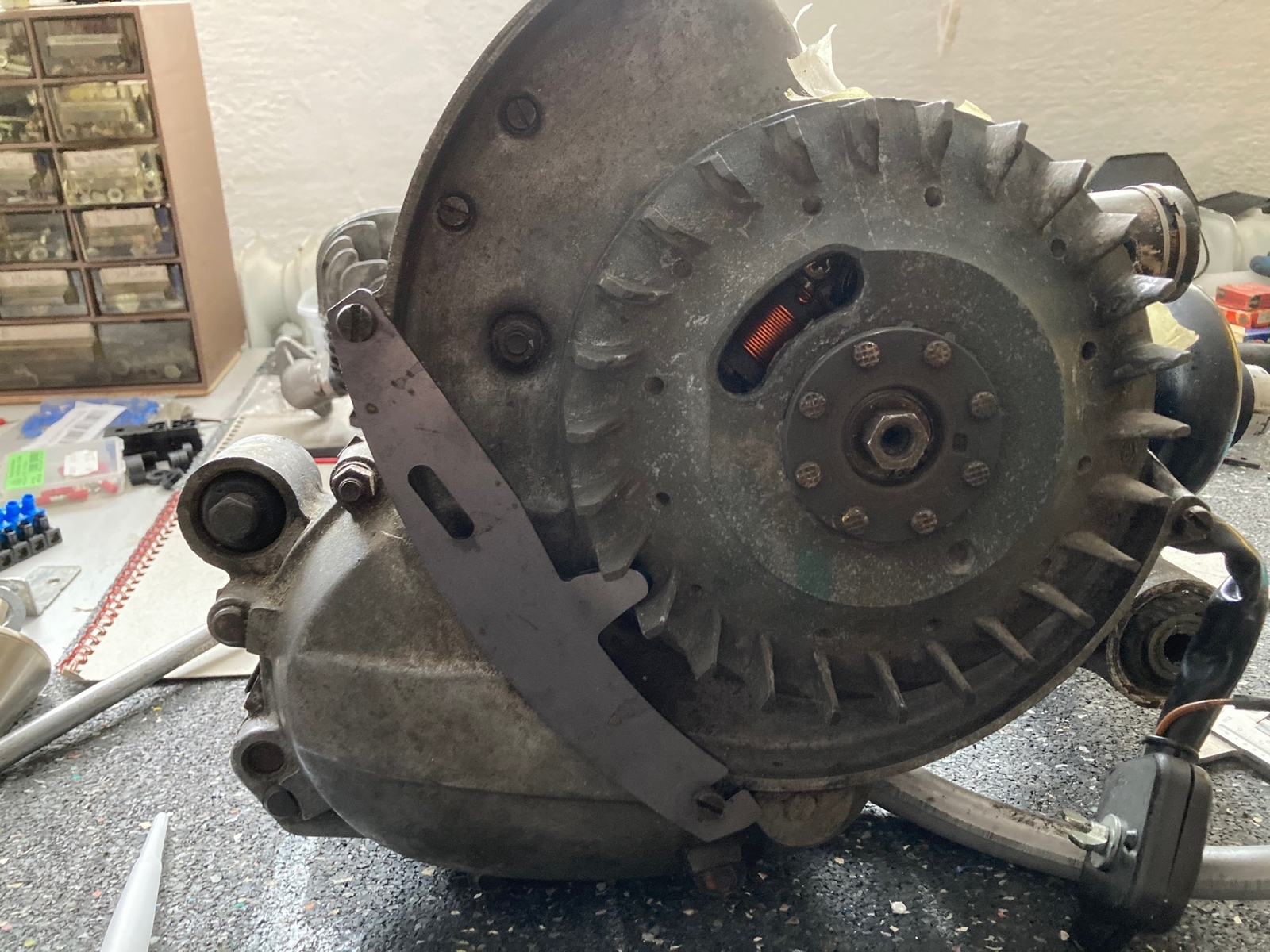 Also Tanatos' Kolben ist unterwegs. Heute kam das Päckchen mit Polradhalter und ein paar Dichtungen an. Ich gehe jetzt das Polrad-abziehen nochmal an.