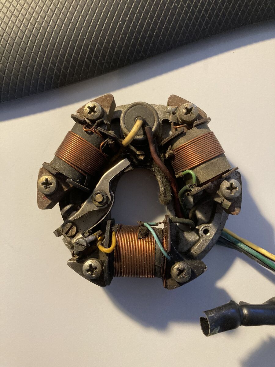 Habe inzwischen die Zündplatte provisorisch drangemacht und dabei festgestellt, dass meine Markierung für die Zündzeitpunkteinstellung noch auf Zündplatte und Motorgehäuse vorhanden ist. Das erleichtert den Zusammenbau hier etwas.