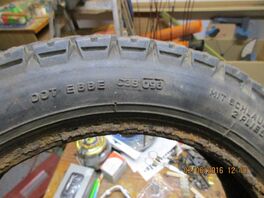 Die letzten chirurgischen Schnitte sind getan und - tada! - Reifen, Felge und Schlauch sind geteilt. Der Reifen ist noch nicht mal zwanzig Jahre alt und sieht eigentlich noch ganz frisch aus: