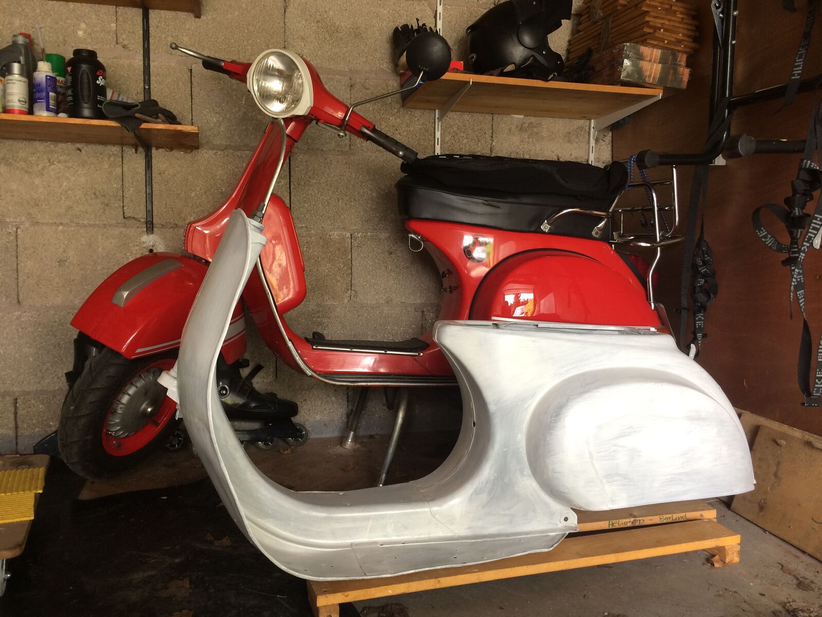 Habe vorhandene Beulen etc. extra so gelassen. Soll nicht der perfeke Showroomroller sein, die Beulen wurden hart erarbeitet. Mich hat's mit dem Roller in meinen Jugendjahren auf winterlichen Straßen während der Fahrt von Titisee-Neustadt nach Freiburg und zurück manchmal heftig gebeutelt - war teilweise recht abenteuerlich.