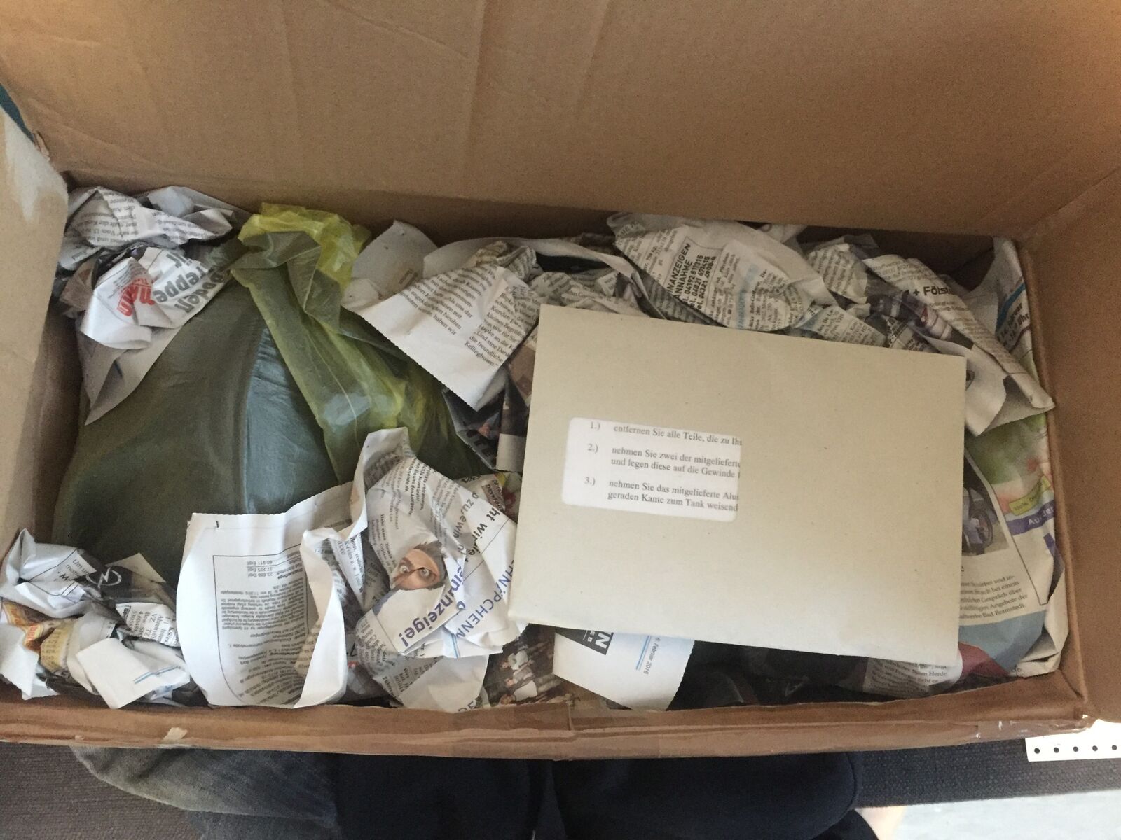 Verpackt war das Ding sicher und ordentlich. In Karton findet sich neben der gut verarbeiteten Sitzbank ein Tütchen mit allen Schrauben, Unterlegscheiben, Blechen und dem Schlüsselsatz für das Schloss.