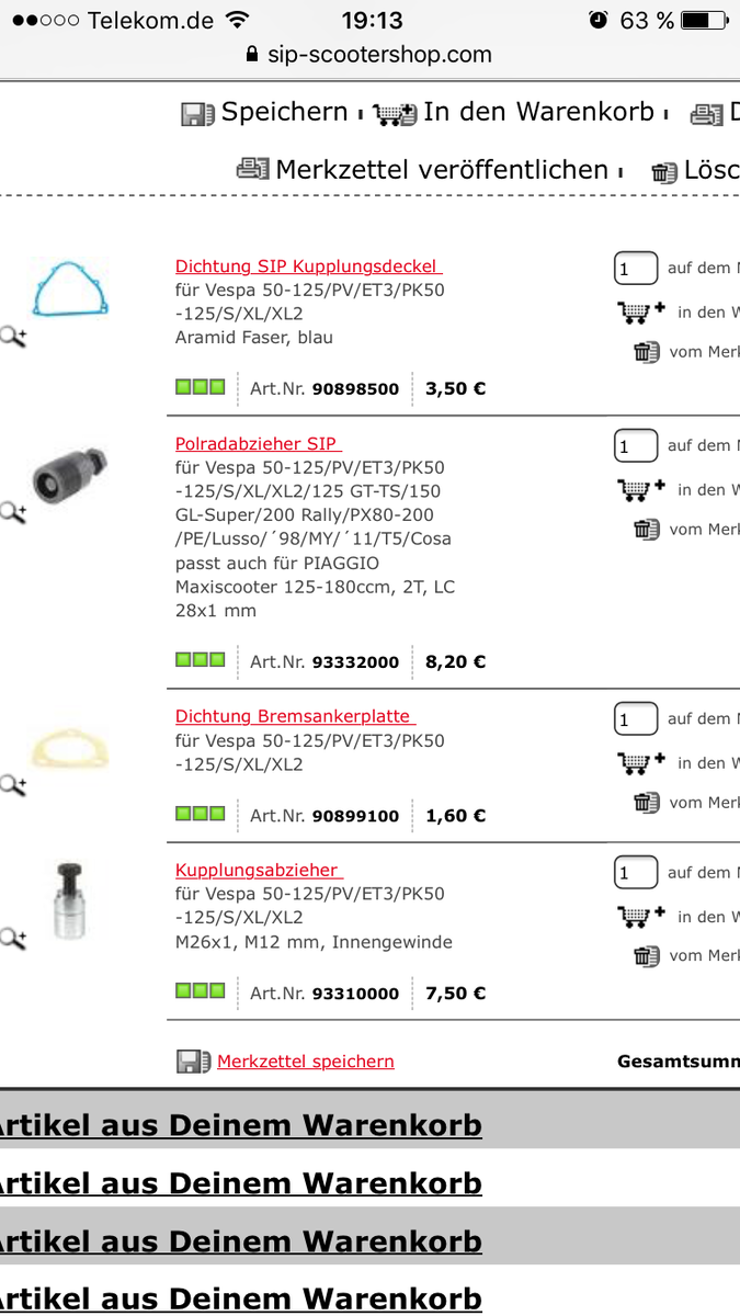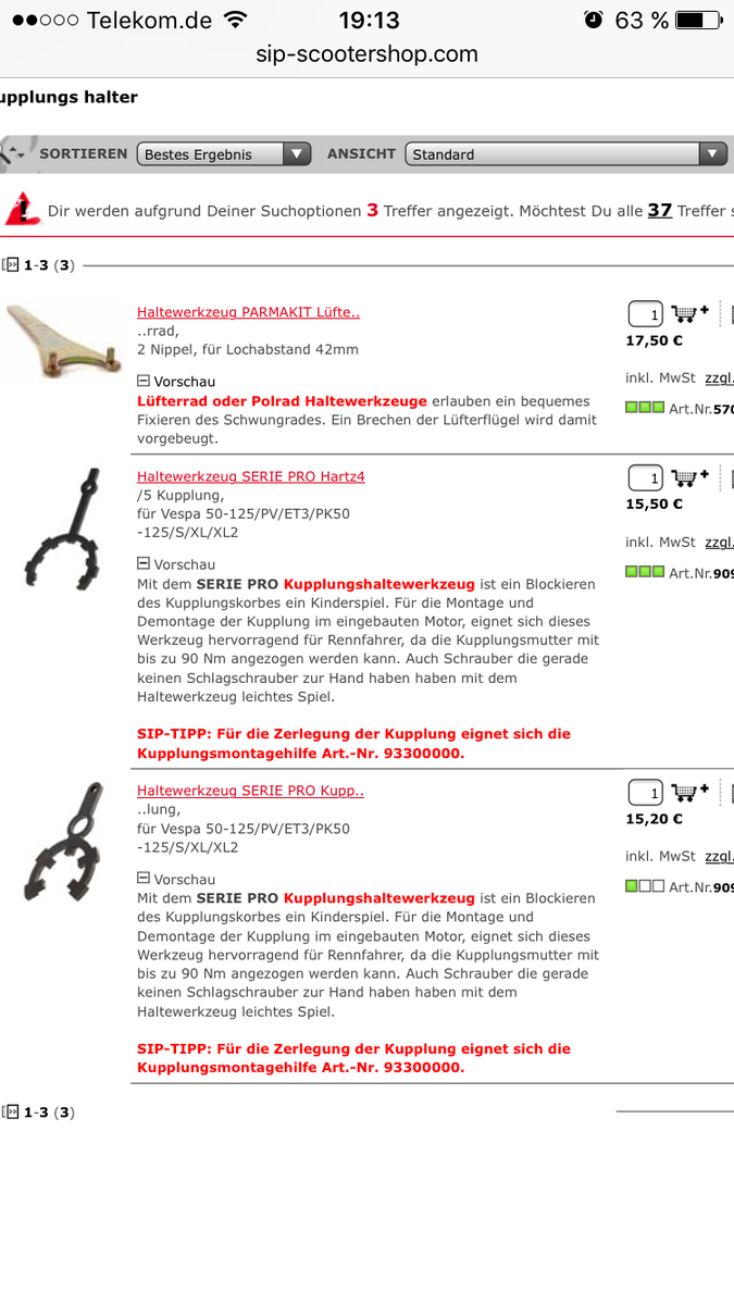 Rest vom Werkzeug passt, kommt bei Scooter Center aber günstiger.