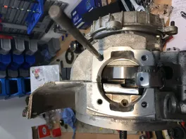 Beim Heraustreiben der Nebenwelle samt Lager ist mir leider der Guss leicht gerissen. D.h. Die kleine Motorhälfte geht jetzt erstmal zum Schweißen.
