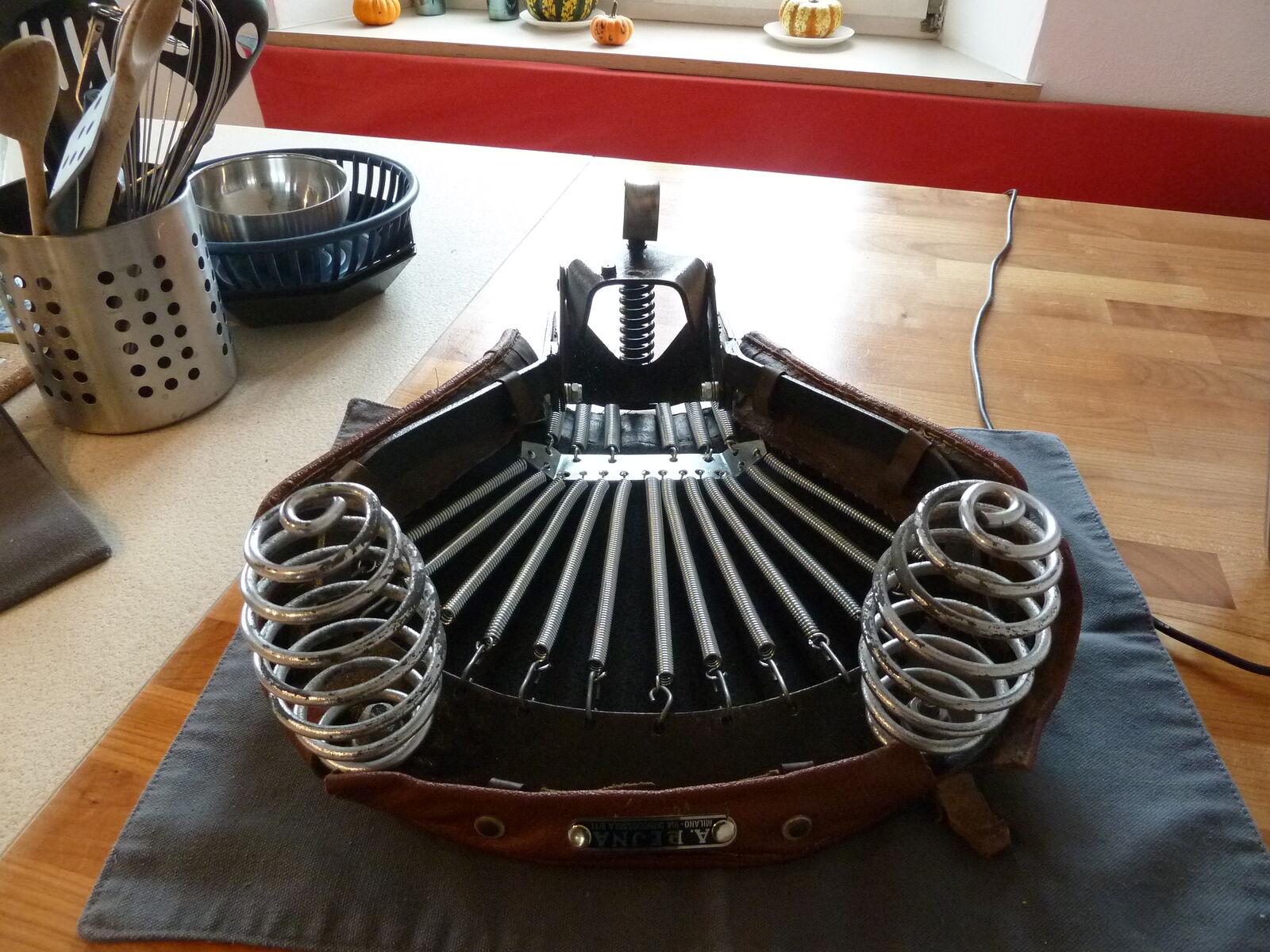 aufgetragen und Schichtweise den umgewandelten Rost abgetragen. Mittels Messingbürste bzw. Nassschleifpapier