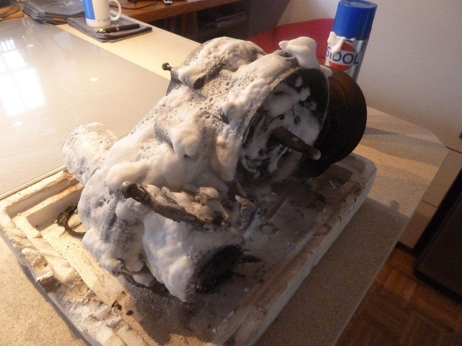 Als Erstes habe ich mit Aceton den Ü-Lack entfernt und mit Rostdelete den Bereich der Rahmennummer