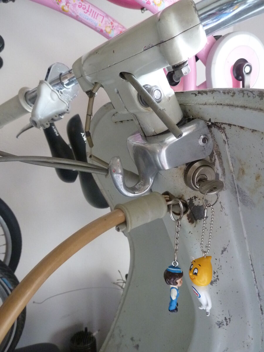 4.) neues Schloss einfädeln (ich habe mir einen Spagat durch die Lenkrohraufnahme gezogen und das Schloss dann rauf gezogen.