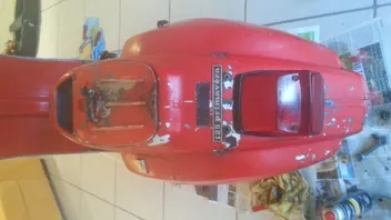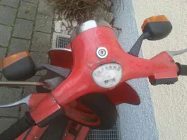 Die Vespa war zudem immer rot, man sieht das bei den Lackschäden, es kommt keine andere Farbe zum Vorschein