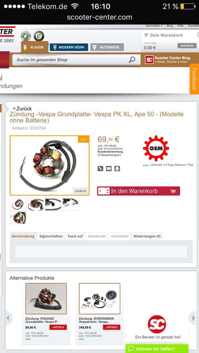 Hab mir einen neuen Motor gekauft der eine elektronische Zündung hat. Motor läuf, aber die elektrischen Bauteile <span style="-webkit-tap-highlight-color: rgba(0, 0, 0, 0);">noch nicht.