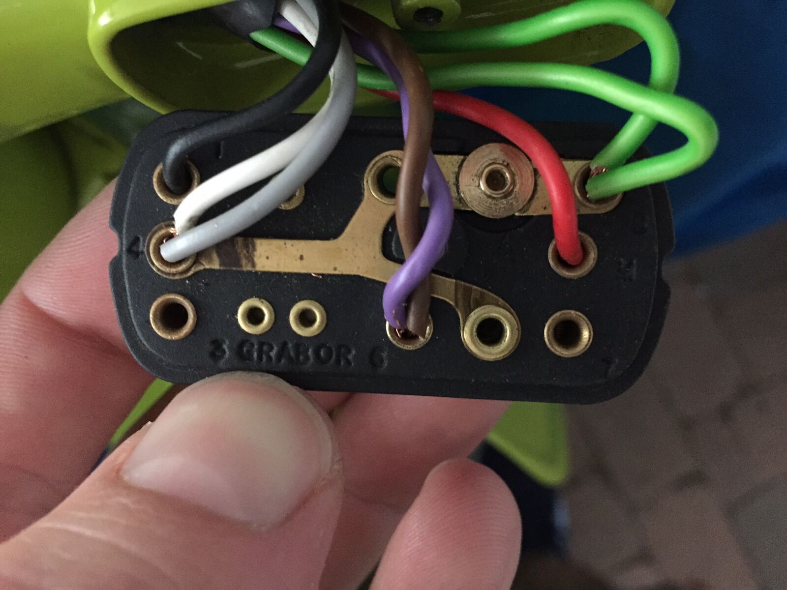 Mein Modell ist von 1966, hat 2 Spulen auf der ZGP mit außenliegender ZS (Schwarz und Rot). Das Rücklicht ist an einem grauen Kabel angeschlossen, der Frontscheinwerfer hat 2 schwarze (Masse?), Violett und Braun.
