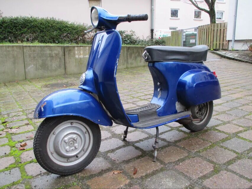 Die Vespa stammt aus dem Jahr 1967 (V5A1T) und ist noch mit dem eckigen Emblem, wie es bei der Erstserie zu finden ist, versehen.