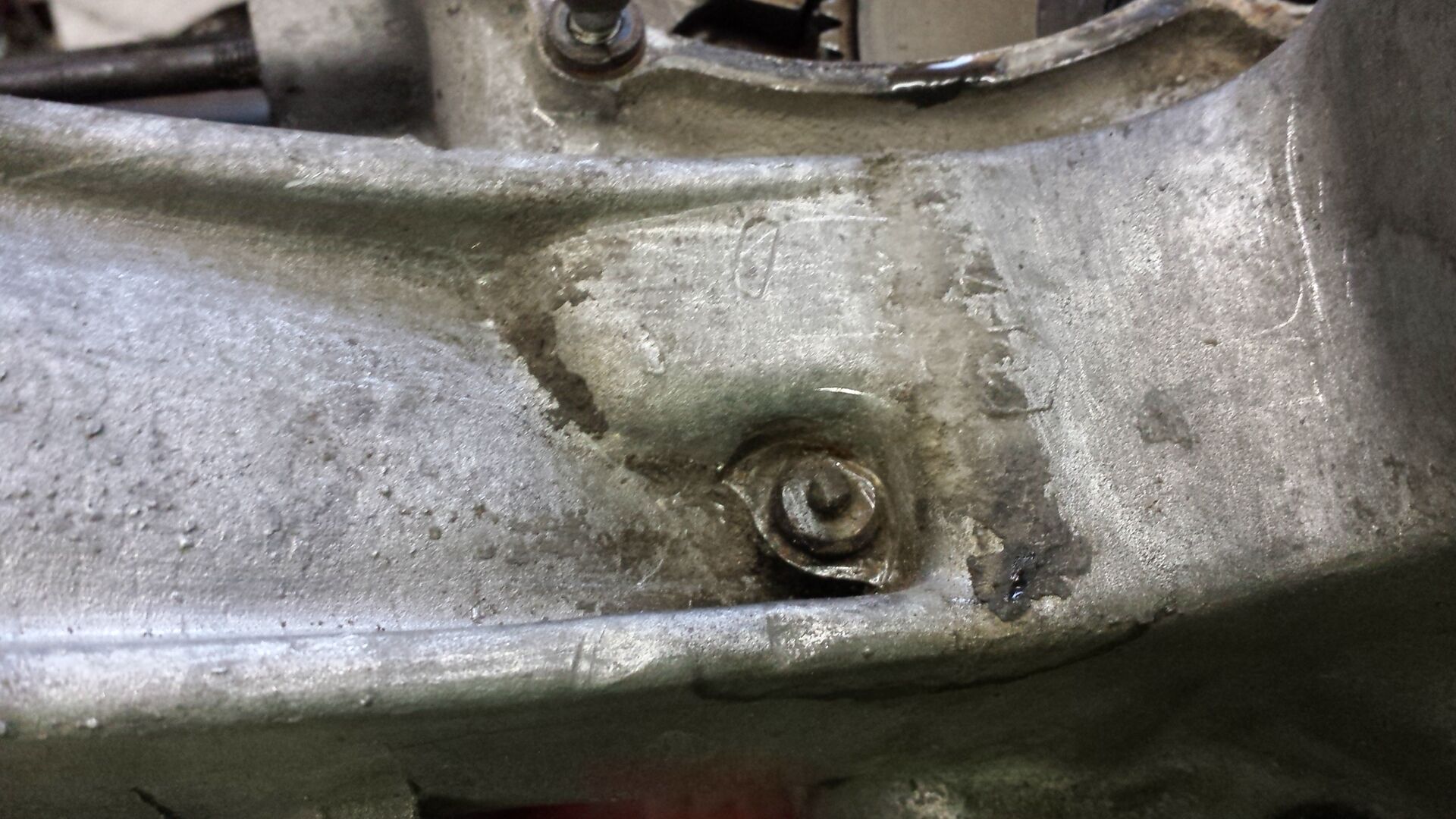 Der lange bolzen an der schwinge wurde schonmal versucht auszubohren so wie es aussieht. Hat aber nicht geklappt. Ein bohrer ist drin abgebrochen.