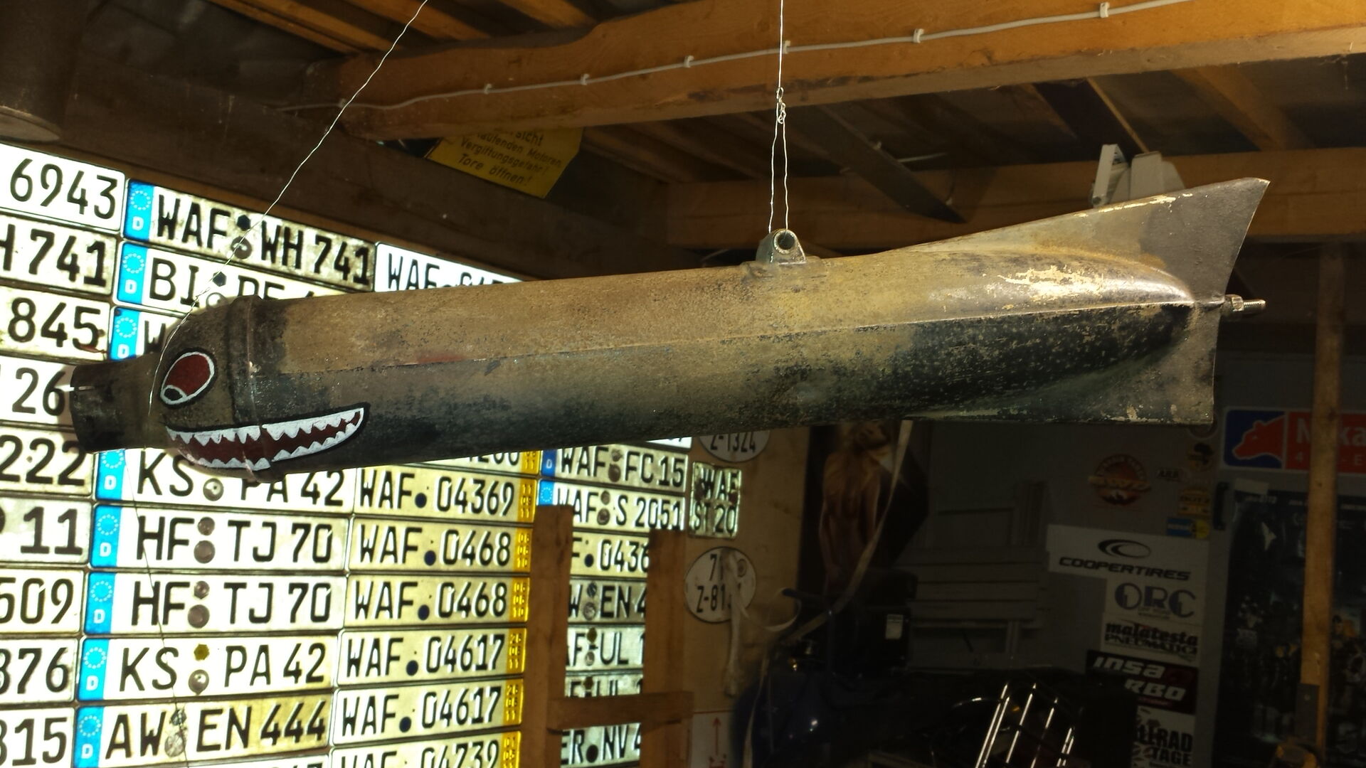 Und zum abreagieren habe ich dann meine DKW Auspuff rakete erstmal unter die decke gehängt