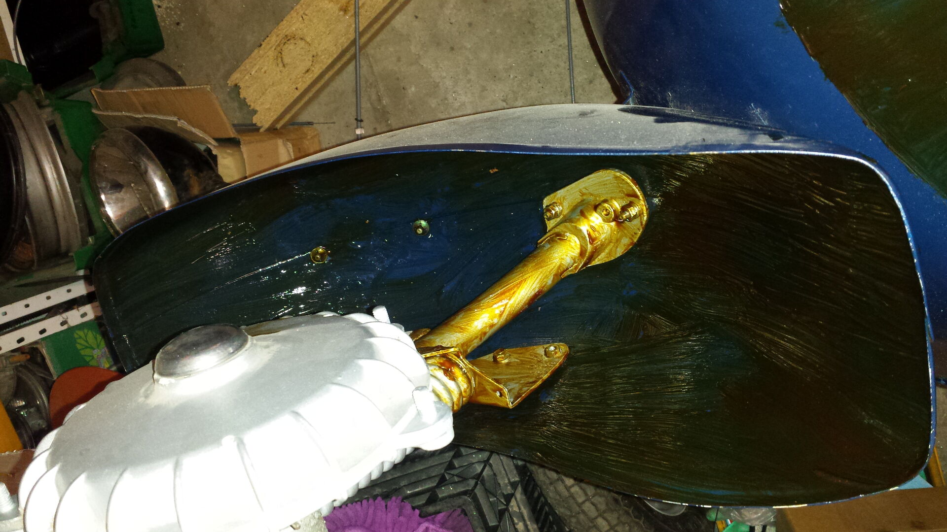 Hab den rahmen erstmal auf den kopf gedreht und unterbodenwachs drunter gepinselt. Der kann bis dahin trocknen.