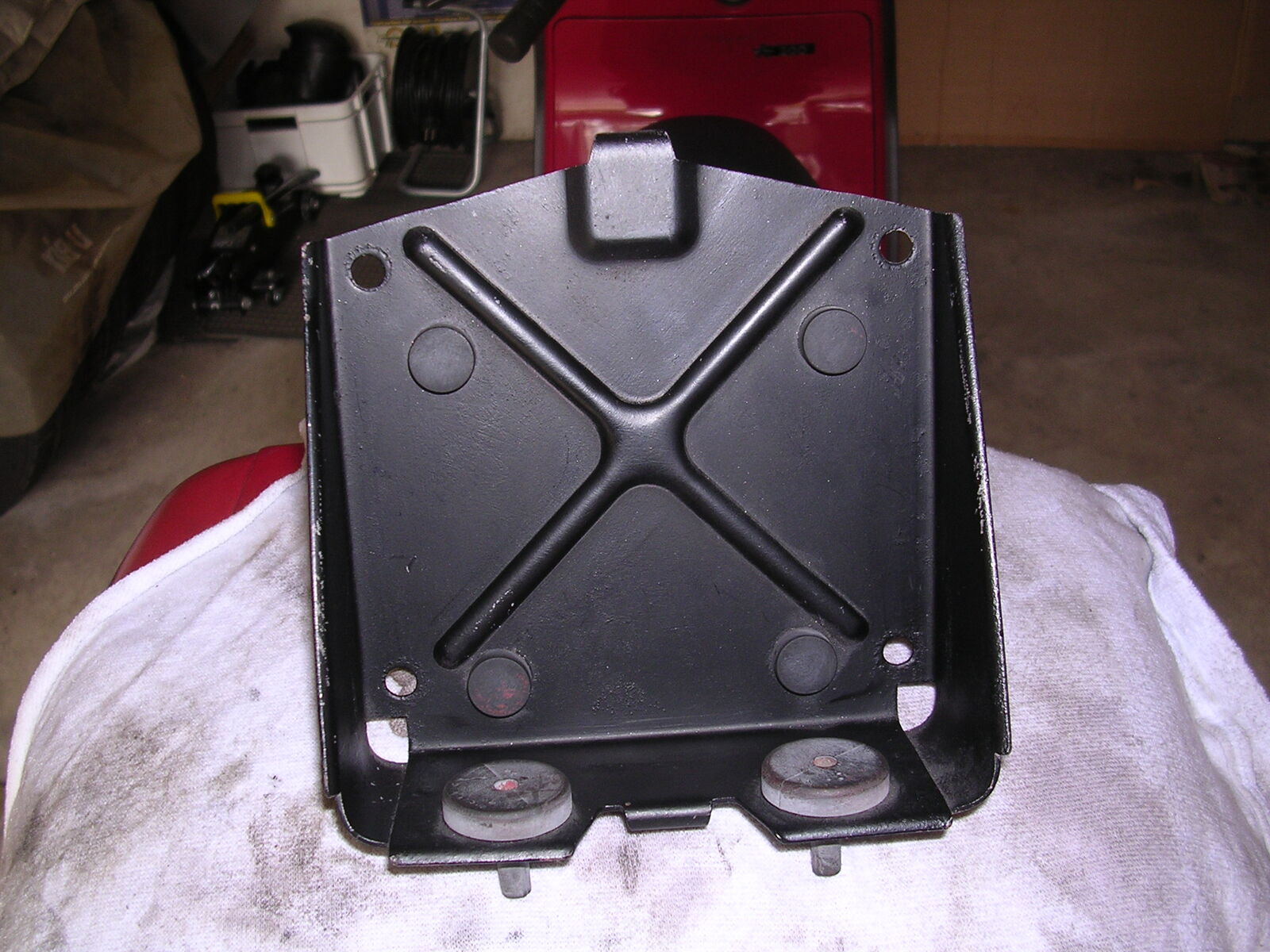 nur zur Befestigung des Reserverades brauchst Du dieses Teil nicht. Dafür sind an der Karosserie zwei M8 Bolzen vorhanden. Mein Bild zeigt die Halterung für eine Batterie. Wenn Du genau hinsiehst, entdeckst Do an dem Teil oben links u. rechts zwei Löcher durch die die o.a. Bolzen hervorkommen u. als Befestigung für das Reserverad dienen.