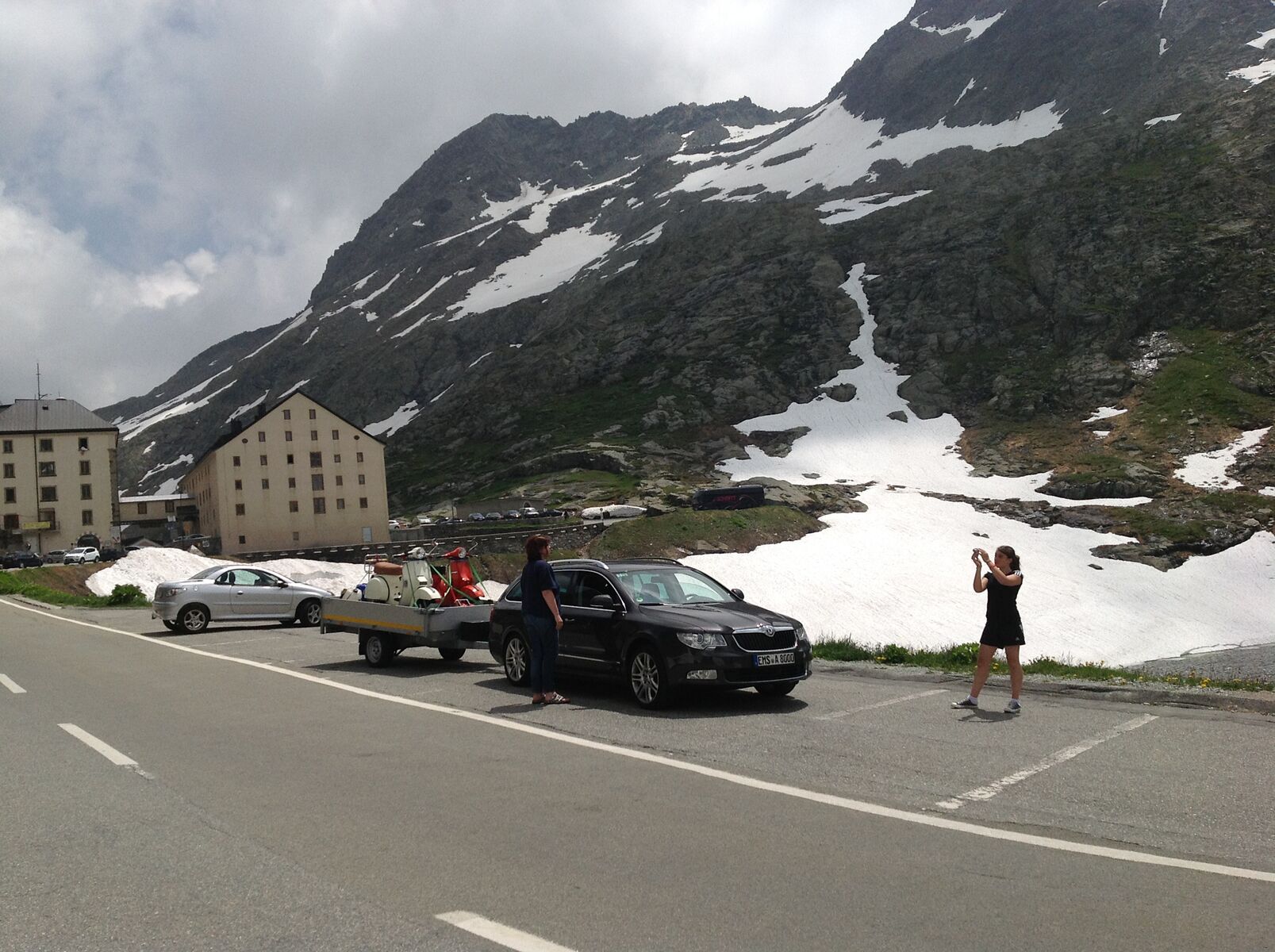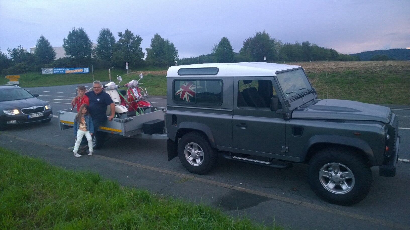 Anhänger hinters Auto geht auch, ist halt nicht so lustig, aber man ist dem Wetter nicht ganz so ausgeliefert. Wir nehmen allerdings 2 mit, eine würden wir ins Auto schmeissen (und das ist kleiner als deins