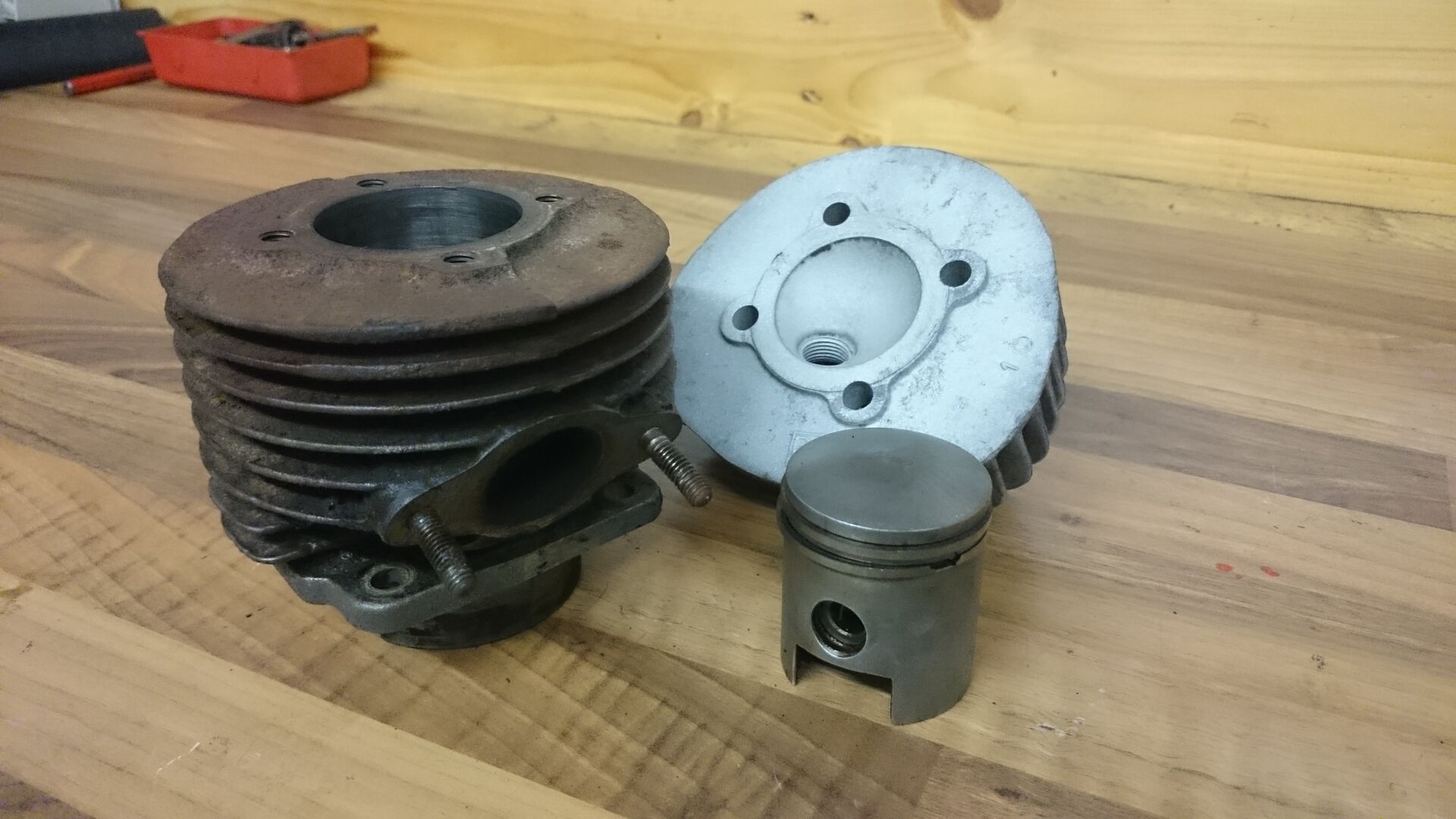 1. Zylinder 60ccm, komplett (Clips, Bolzen, alles da!) und ist bis zum Ausbau einwandfrei gelaufen. Kann man so wie er ist problemlos weiterfahren.