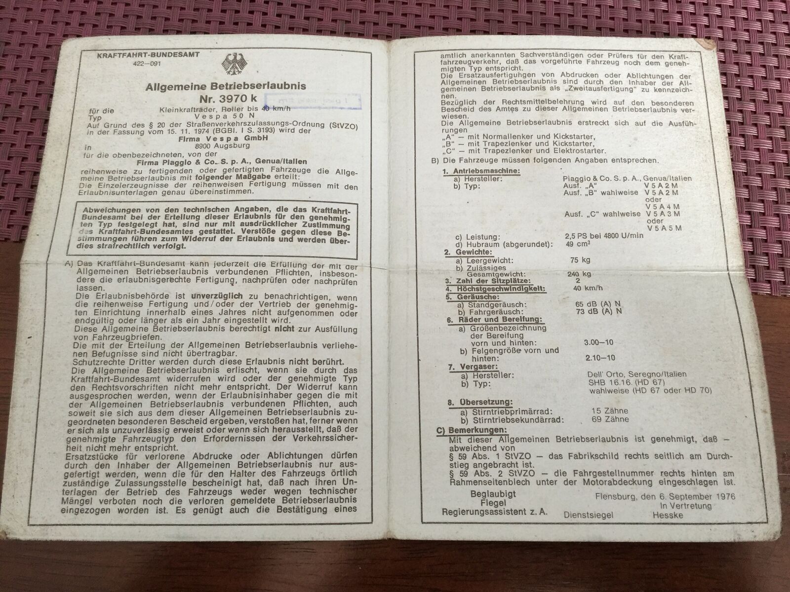 mich würde interessieren ob man prüfen kann ob meine V50 Special bereits auf 48 oder 50 kmh eingetragen wurde. Ich habe nur die original Papiere mit 40 kmh Eintragung. Allerdings würde mich interessieren ob es sein kann, dass die Vespa von einem der Vorbesitzer auf 48 oder 50 kmh eingetragen wurde. Kann man das irgendwie prüfen?