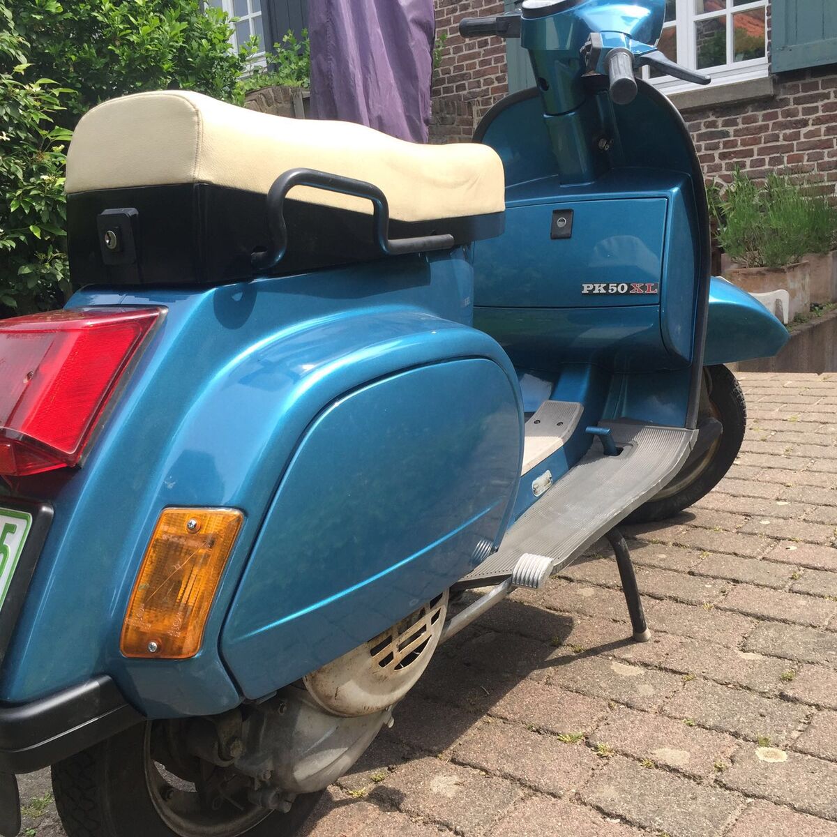 Ich hab eine PK 50 XL 1. Frisch lackiert, sieht schick aus! ich werde aus ihr nie eine V50N machen können, das weiß ich, dennoch möchte ich gerne das Beinschild mit einem Monoschlitzrohr verkleiden, und zwar in Chrom(Optik).