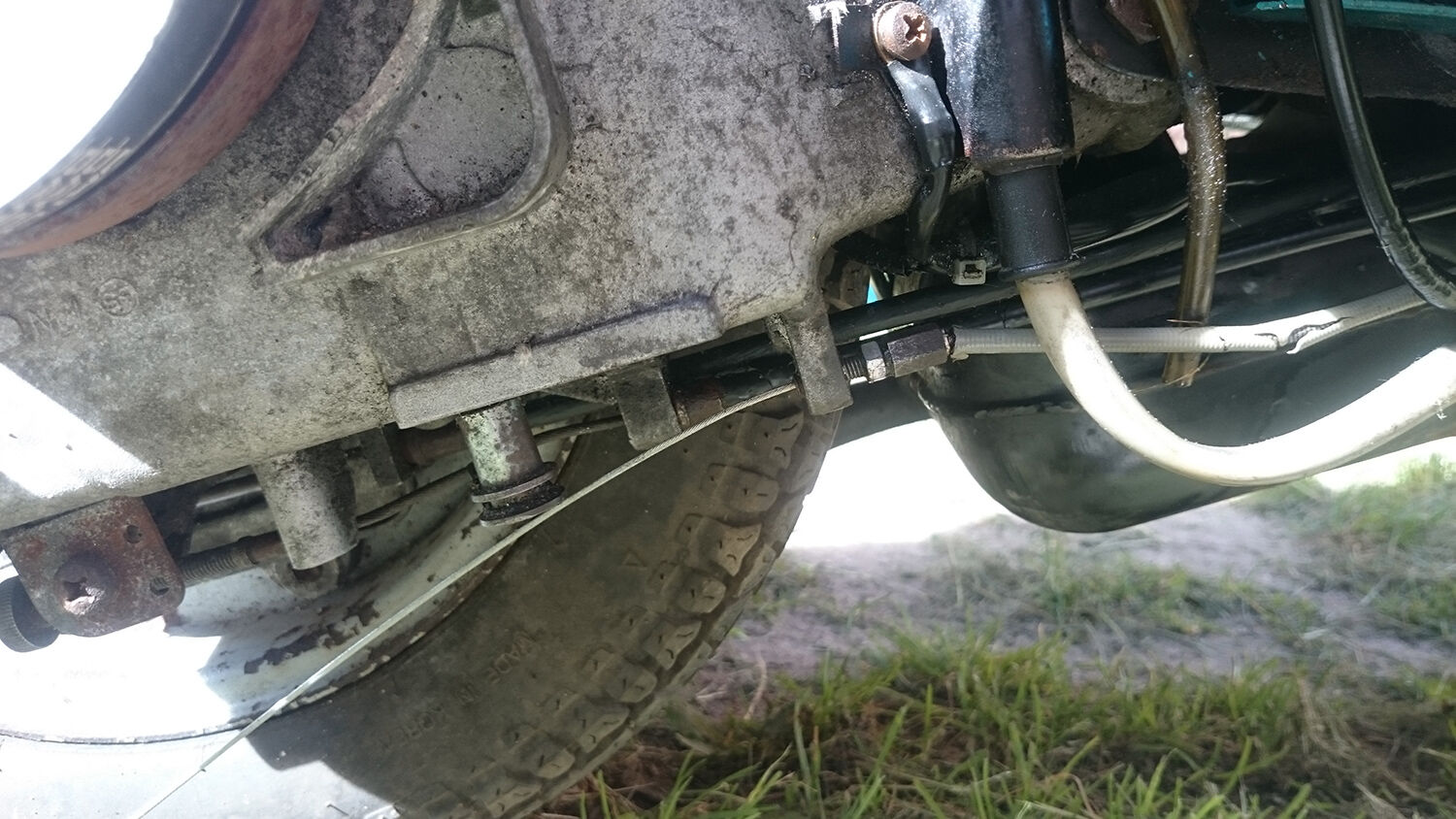 der Gaszug wird unter dem Motor in ein Hebelchen eingehängt. Unter der schwarzen Kunststoffabdeckung unter der auch dein Gangzug ist. Von dort geht es über ein Gestänge zum Vergaser weiter.