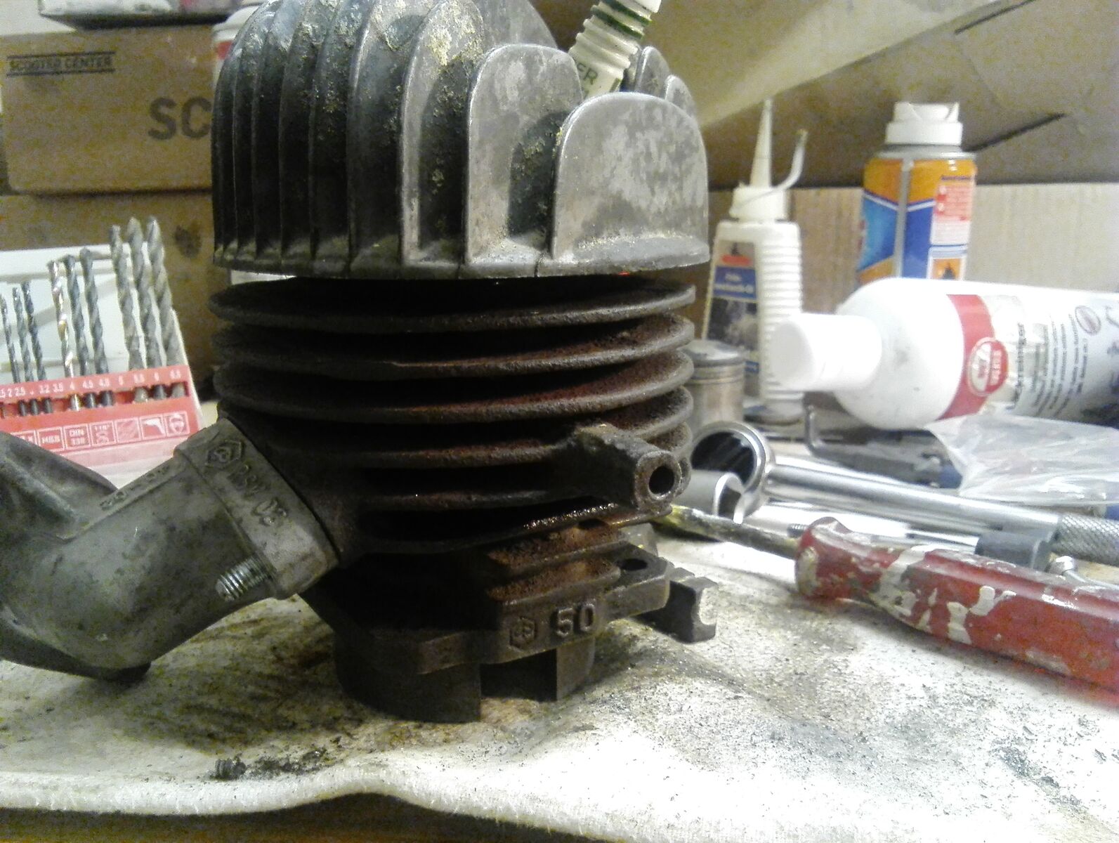 So, und weil "Strahleman" mir ganz gut gefiel habe ich mir auch den zukünftigen Zylinder mal genauer angesehen. Wie jeder andere hatte ich zufällig noch einen gebrauchten Original 50 ccm-Satz im Regal liegen :whistling: . Selbstverständlich mal als "Ersatz" gekauft :saint: .