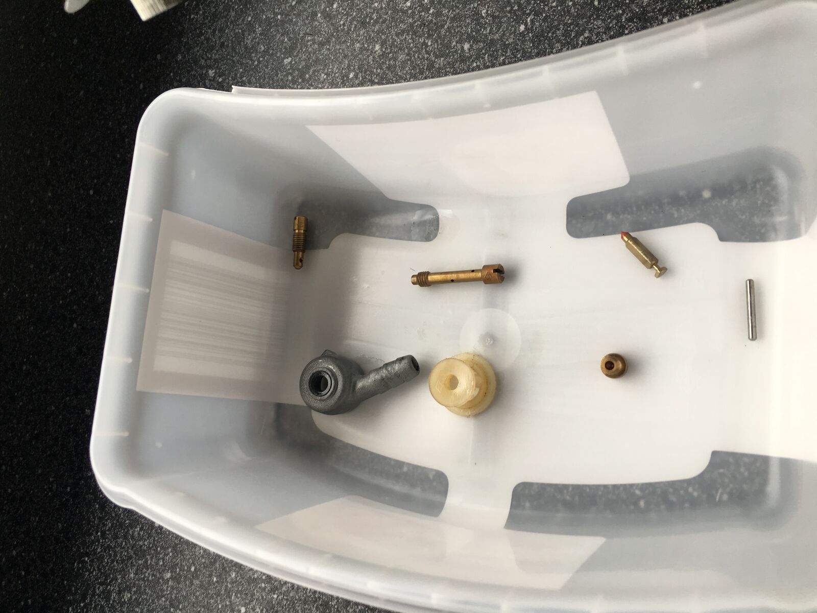 So bin gerade fertig geworden mit Tank säubern (war voller Rostreste) und vergaset ausgebaut alle Schrauben aufgemacht auch Anschluss wo der Sprit durchkommt und ich hab alles in Reinigungsbenzin eingelegt und anschließend mit Druckluft nochmal gesäubert.