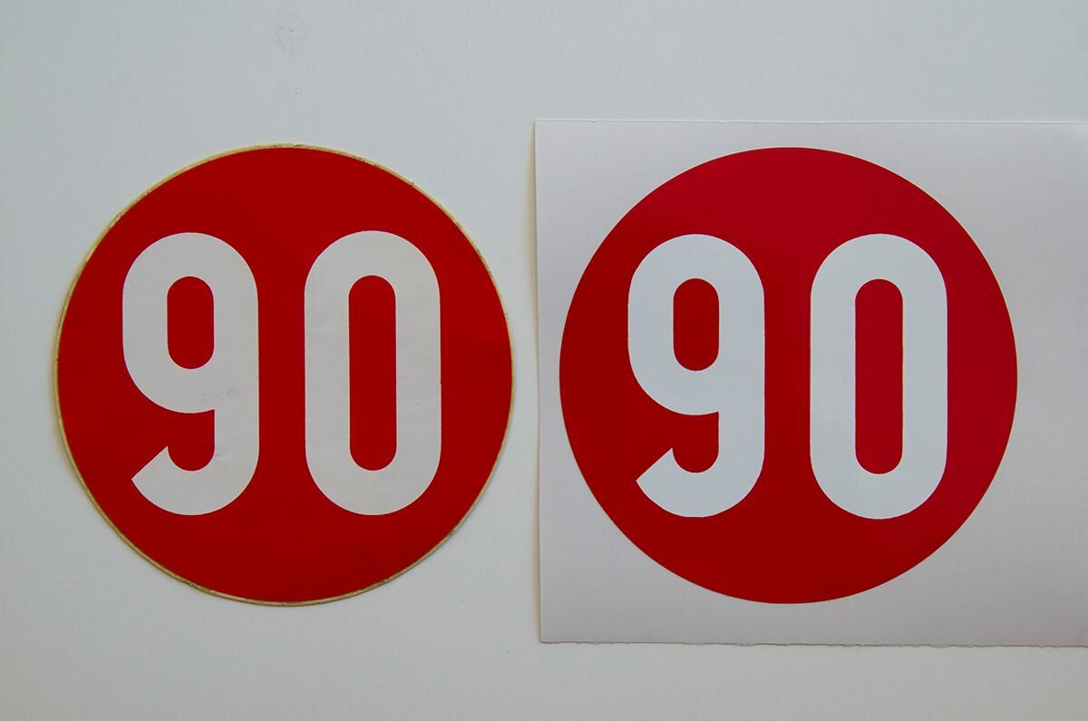 Nachdem ich neulich mal danach gefragt wurde, habe ich eine Kleinauflage der beliebten 90-Aufkleber geplottet. Vorbild war ein NOS-Teil, das ich mir vor einiger Zeit (für unverschämt viel Geld) mal geschossen habe.