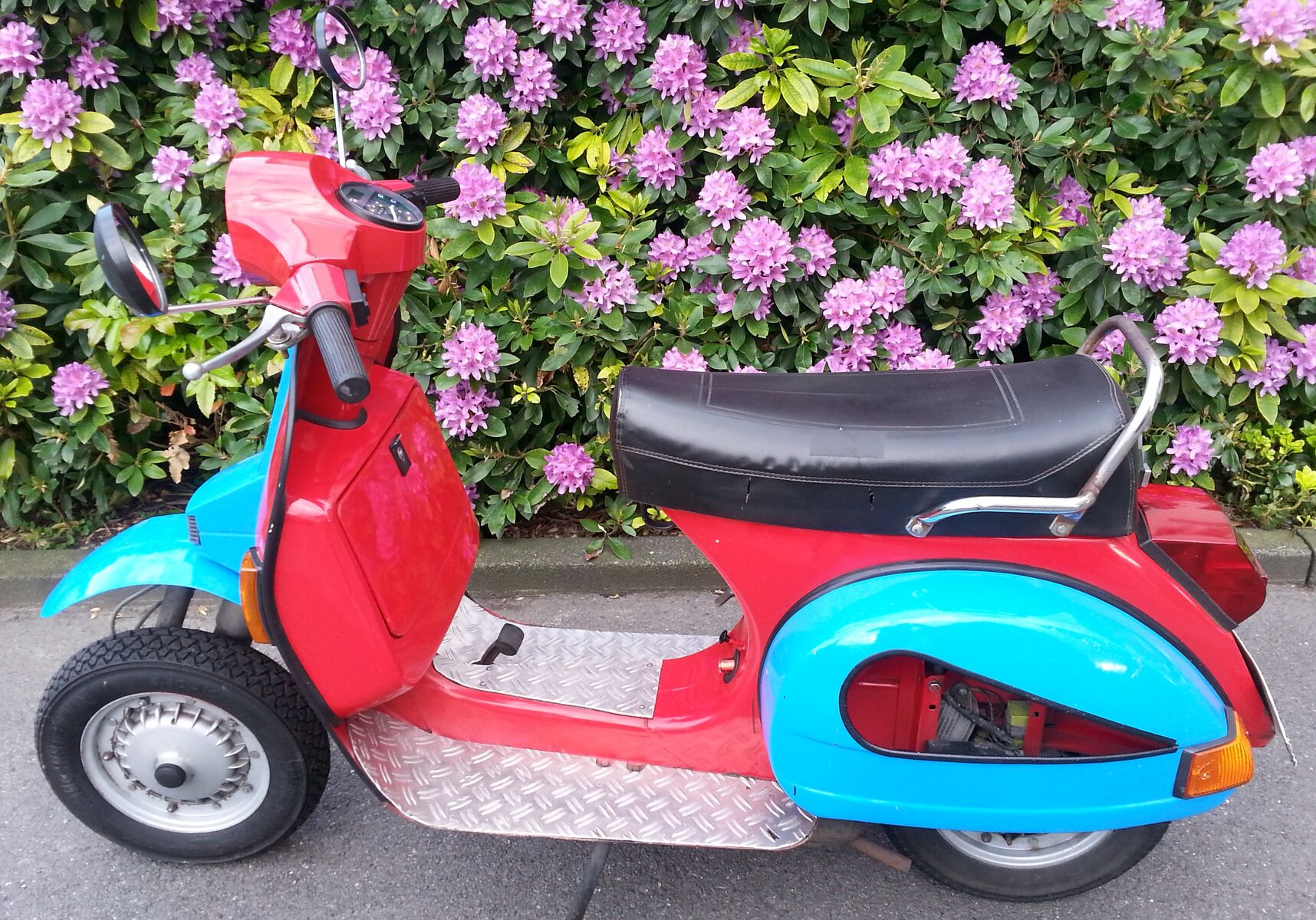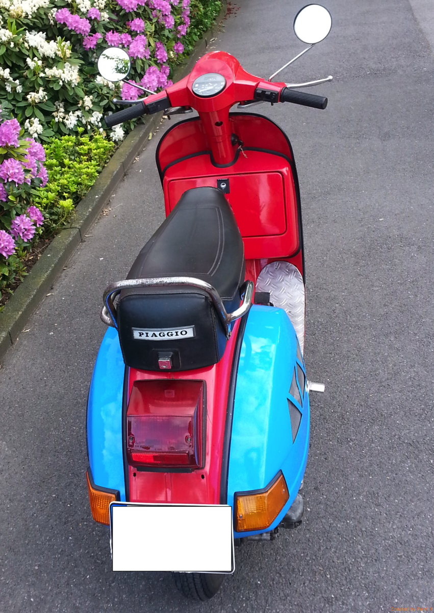 Ich verkaufe meine Vespa PX80, BJ 1991, in hellblau-rot, Standort Essen. Leider wird sie zu wenig genutzt und dafür ist sie zu schade. Die Vespa wurde vor 2,5 Jahren general überholt. Der TÜV ist im Dezember abgelaufen. Sie funktioniert aber immer noch einwandfrei und kann theoretisch sofort losfahren. Hat kleinere Macken am Sitz und Lack, aber nichts was größere Arbeiten erfordert.