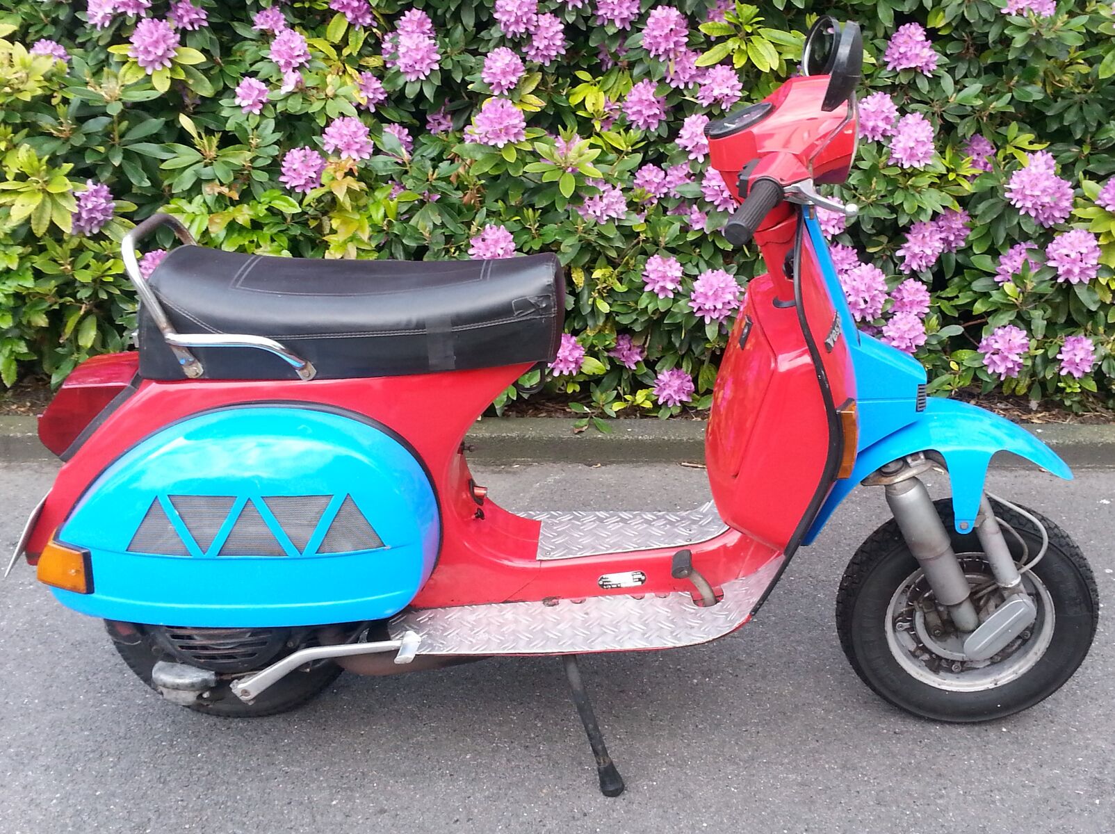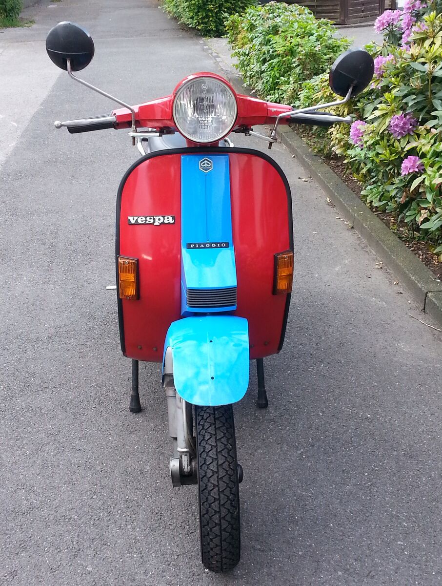 Ich verkaufe meine Vespa PX80, BJ 1991, in hellblau-rot, Standort Essen. Leider wird sie zu wenig genutzt und dafür ist sie zu schade. Die Vespa wurde vor 2,5 Jahren general überholt. Der TÜV ist im Dezember abgelaufen. Sie funktioniert aber immer noch einwandfrei und kann theoretisch sofort losfahren. Hat kleinere Macken am Sitz und Lack, aber nichts was größere Arbeiten erfordert.