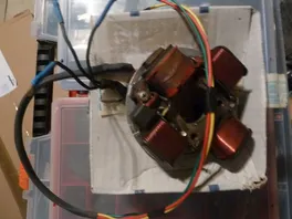 Hat Spule für Zündung, eine für Bordspannung, einen Hallgeber und zwei leere Spulenkörper.