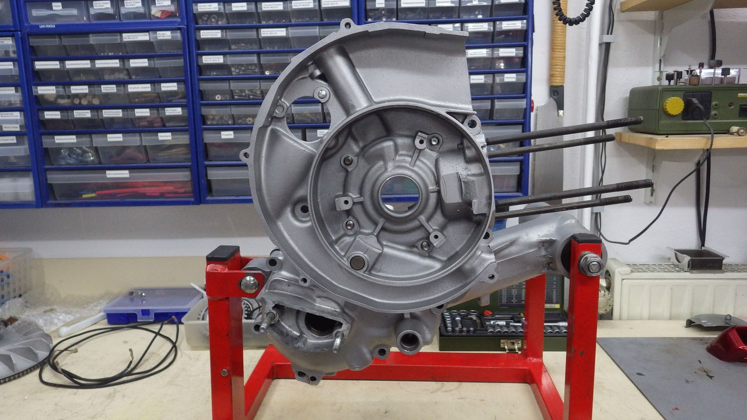 Wird aber auch gleich der Motor revidiert. Bereits Sand- und Alugestrahlt - sieht aus wie neu. Kriegt jetzt neue Antriebswelle, da Verzahnung schon eingelaufen, Lager u.v.m.