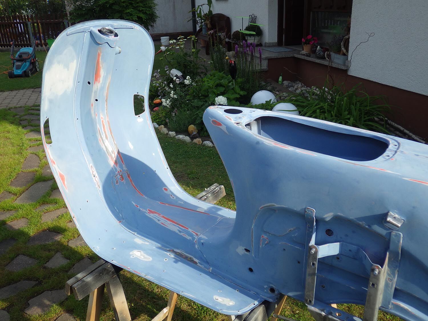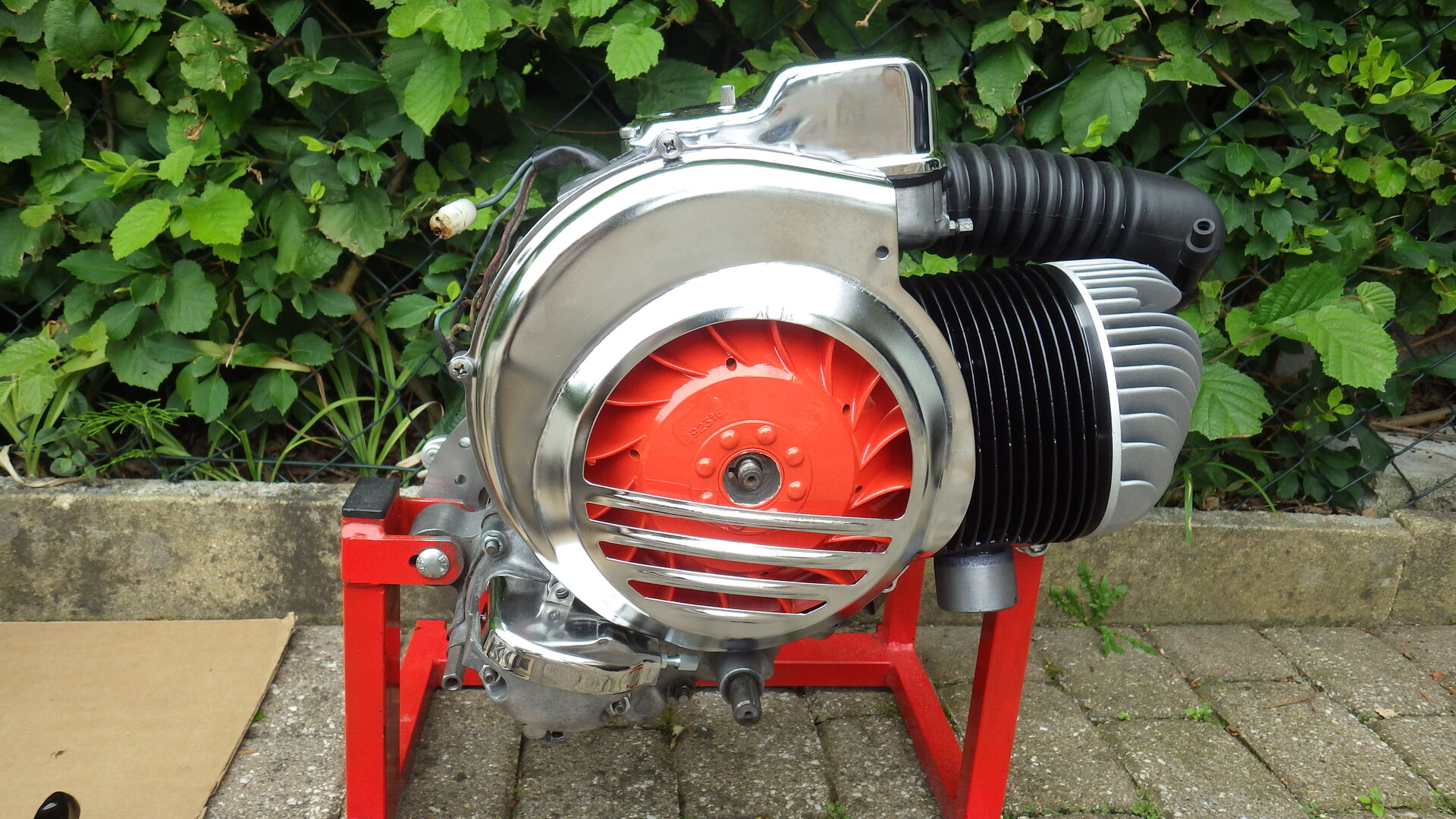 Also wurde sie kurzer Hand gekauft und gleich komplett zerlegt. Altteile verkauft und gleich ne neue PX-Gabel mit Scheibenbremsaufnahme erstanden. 80ccm waren mir leider zu wenig, weshalb ich den Motor umbauen wollte. Mehr ccm und natürlich mehr Leistung. Bin deshalb zu einem anerkannten Händler nach Schwabach gefahren und fragte ihn, ob er den Motor für mich umbauen könne. ???? aber leider vollkommen abgeblitzt, kein Interesse, ich sollte mir eher eine vom ihm restaurierte Vespa kaufen!