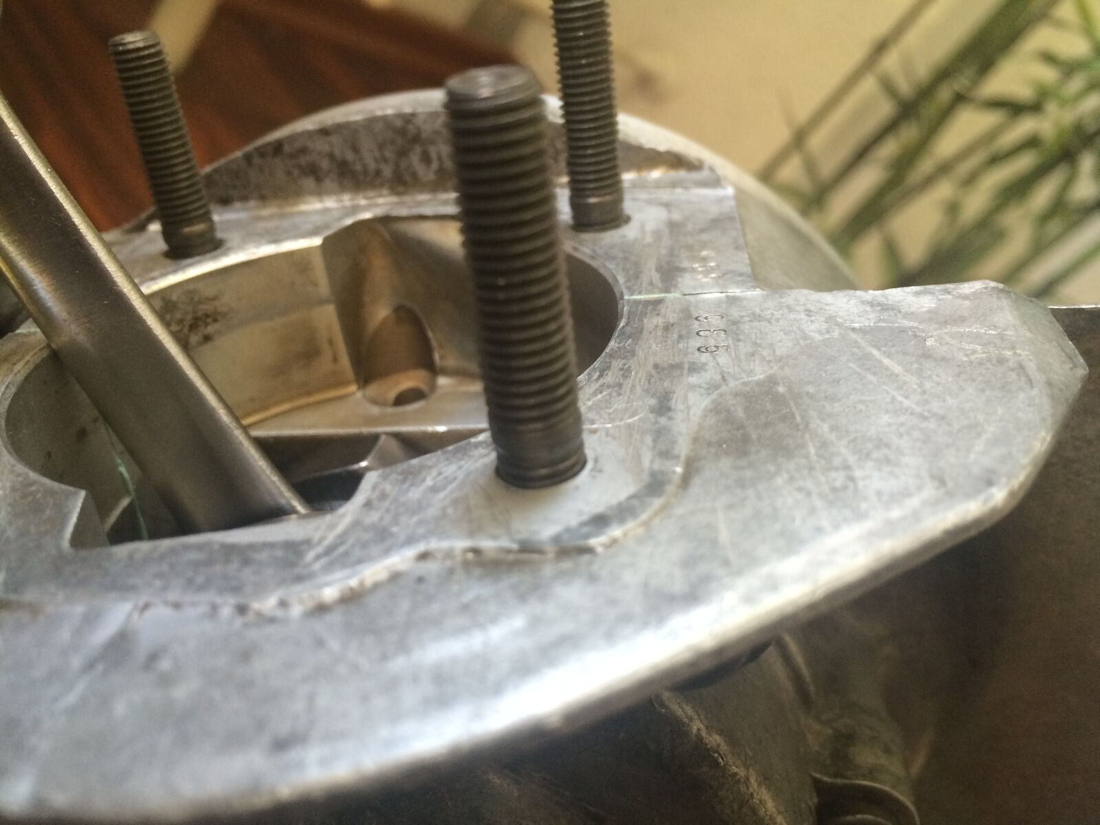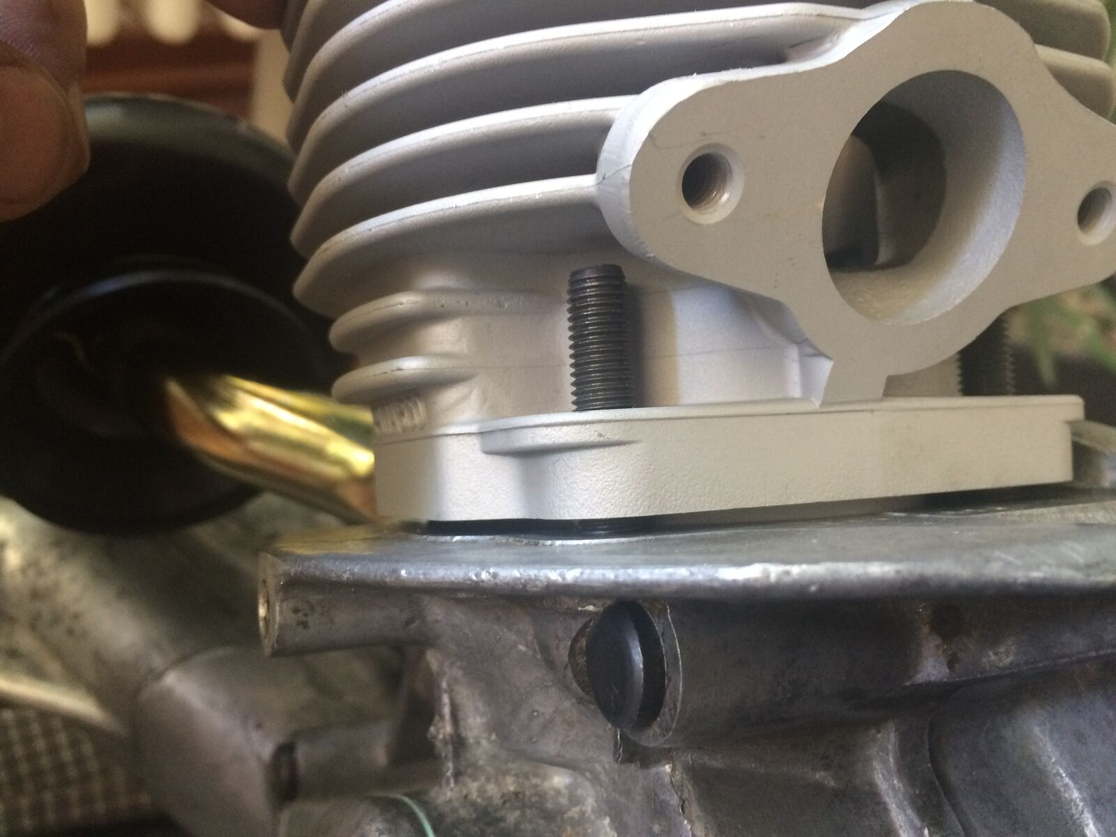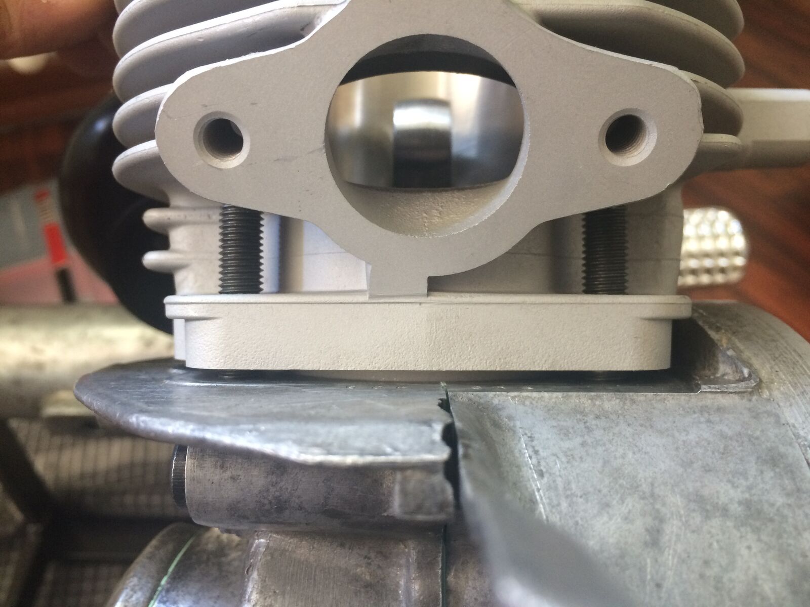Ähh... ich glaub der Zylinder steht am Bund der Stehbolzen an , auf IMG_3574 sieht man das .
